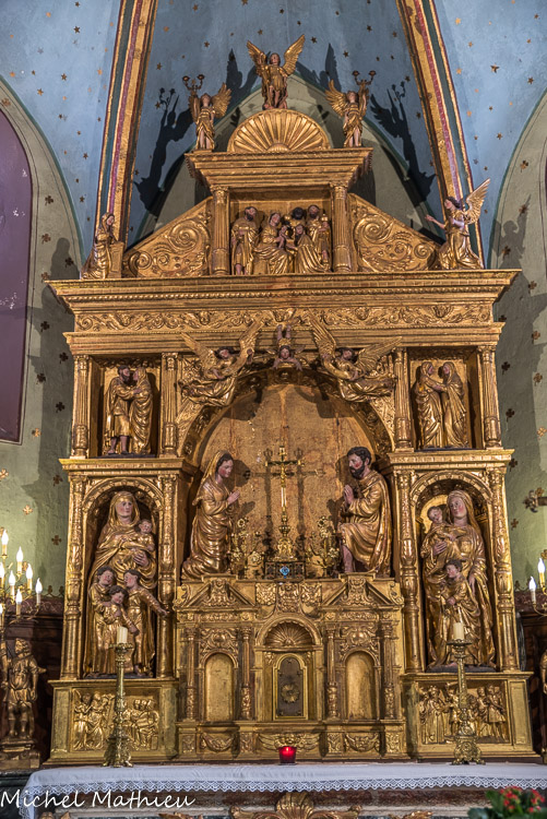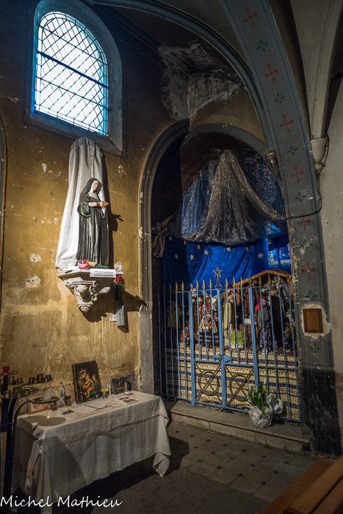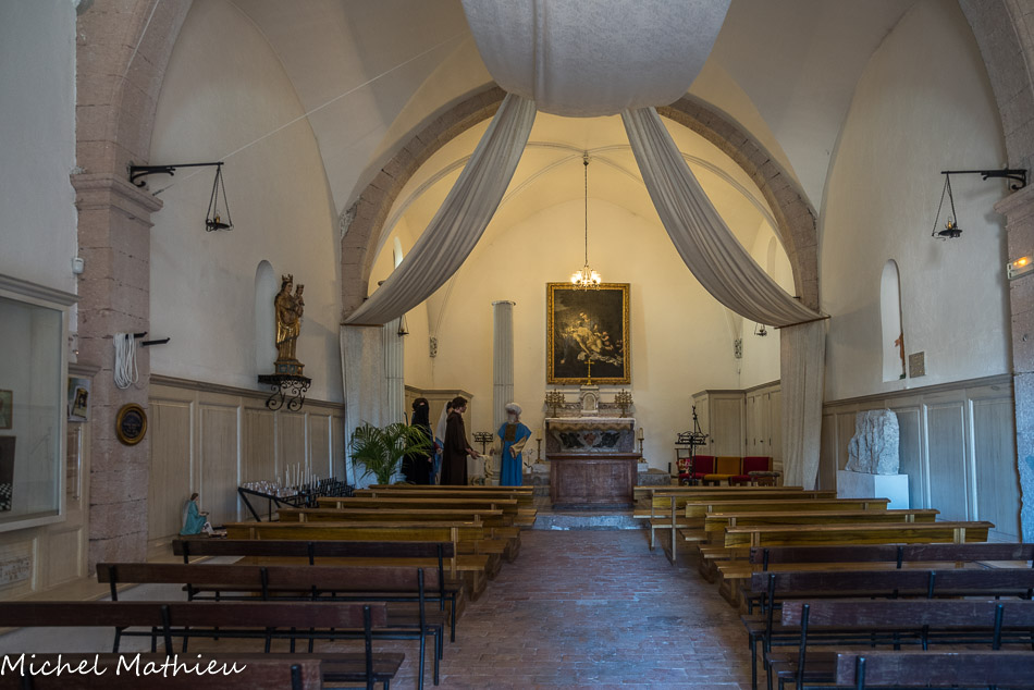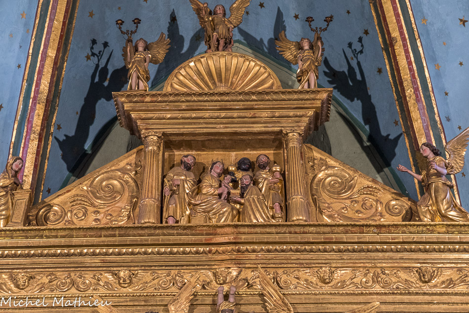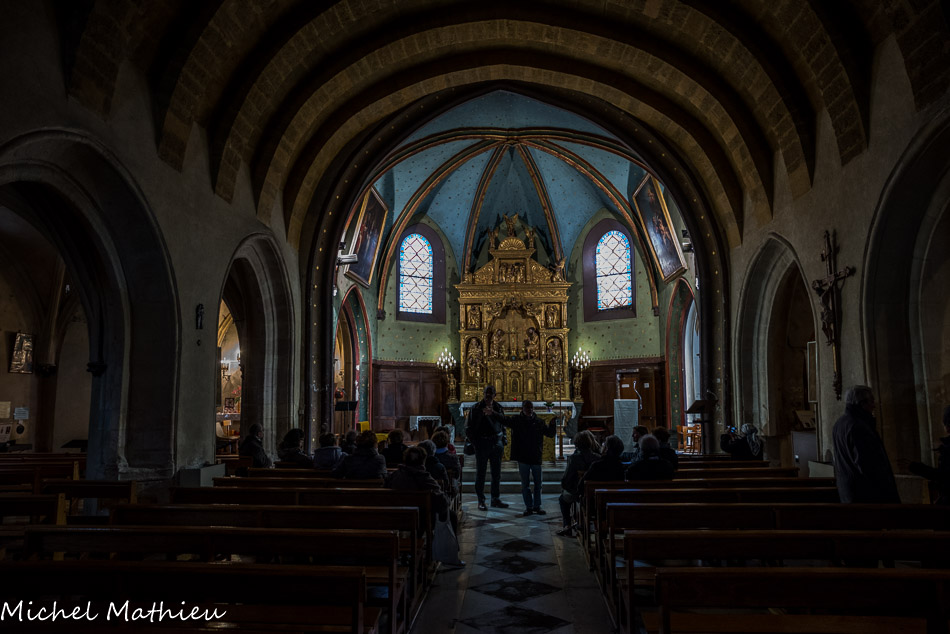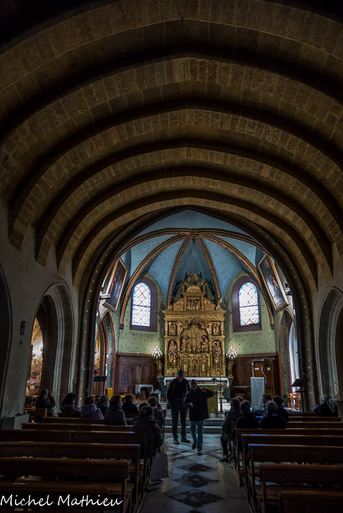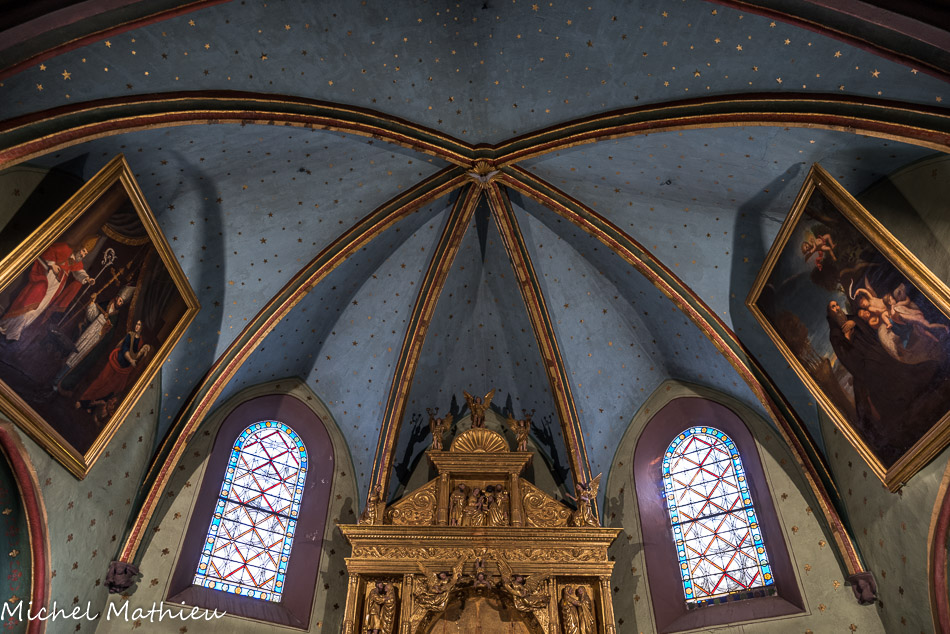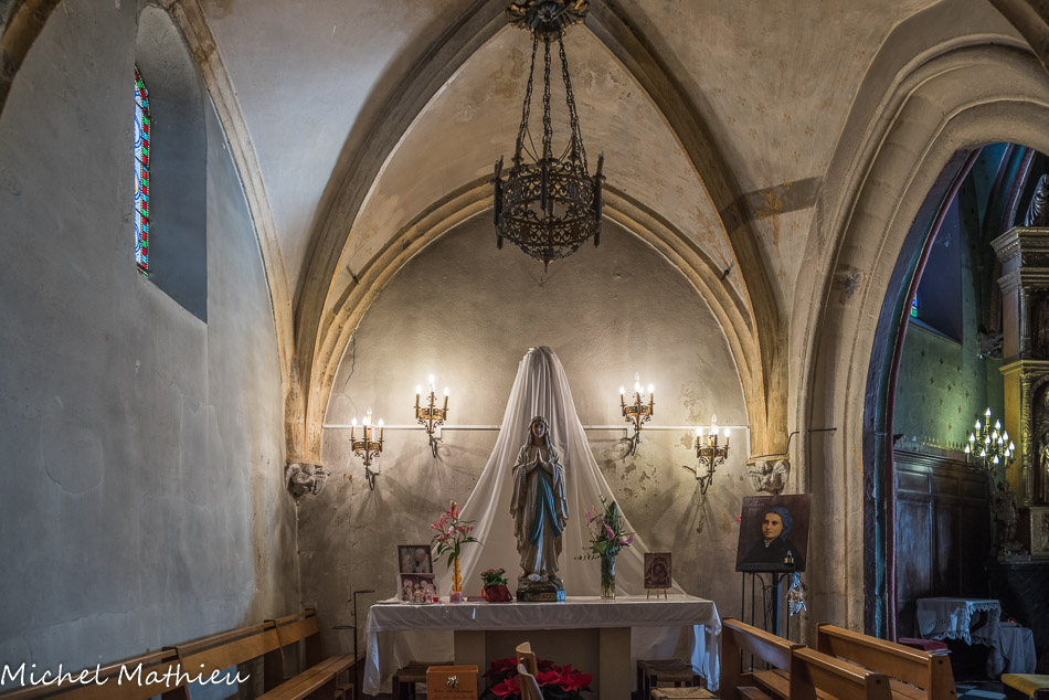 L’église Saint-Nicolas. La troisième chapelle,à gauche, est une chapelle alchimique. On y trouve la « salamandre couronnée », symbole du roi François Ier, la « Tarasque » représentant en Provence, la « Vouivre » ou la femme, être tellurique donnant son énergie au vivant.