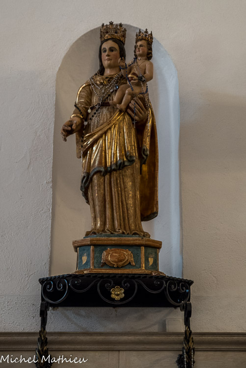 Chapelle Notre-Dame-de-Pitié La statue de Notre-Dame reste celle qu'on porte en procession de nos jours pour les fêtes de la Nativité de la Vierge. De bois doré et peint, reposant sur un socle azuré, elle date du XVIIIe siècle. Il s'agit certainement de la Notre-Dame présente depuis le XVIe siècle dans la chapelle de l'Annonciade de l'église. Cette Vierge à l'Enfant couronnée de lis, emblème marial, a fait l'objet de citations sur des ex-voto. La tradition voulait qu'on la transporte la veille de la procession dans la chapelle Sainte-Anne (disparue) puis à nouveau dans l'église d'où elle " montait " au sanctuaire du Mont-Calvaire, suivie du clergé, des édiles des Pénitents Blancs, d'autres confréries et de la population.