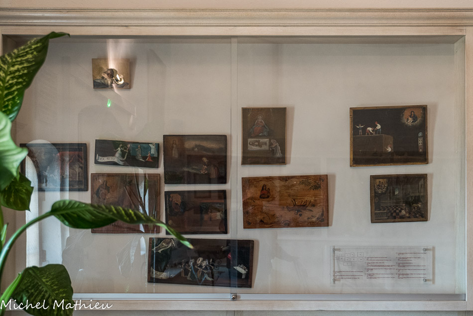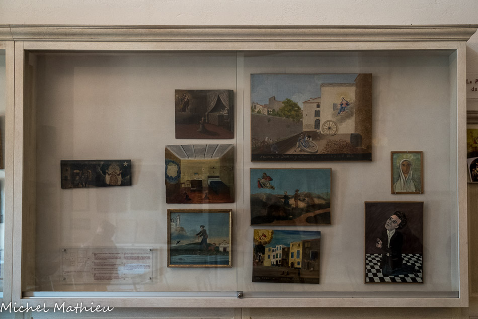 Le plus ancien ex-voto conservé paraît des années 1690, les plus récents sont des plaques inscrites. La plupart datent du XVIIIe siècle et l’on y observe une préférence pour la Vierge à l’Enfant au détriment de la Pietà de retour au XIXe siècle. Beaucoup ont pu être attribués à des peintres de Martigues : Joseph Blaÿ, Joseph-Antoine Bernard, Joseph Hilaire, auteur de véritables scènes documentaires vers 1850. De gauche à droite et de bas en haut :
