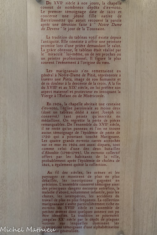 Chapelle Notre-Dame-de-Pitié Sur deux ex-voto datés, de 1848 et 1861, apparaît une Pietà copiée d’après le tableau de l'ancien retable de la chapelle.