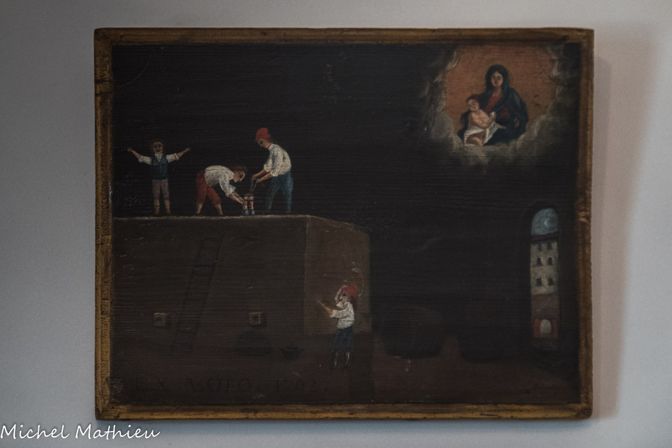 La tradition du tableau votif existe depuis l’antiquité. Elle consiste à offrir une peinture promise lors d’une prière demandant le salut. La grâce obtenue, le tableau était réalisé par le " miraculé " lui-même, un de ses proches ou un peintre professionnel. Il figure le plus souvent l'évènement à l’origine au vœu.