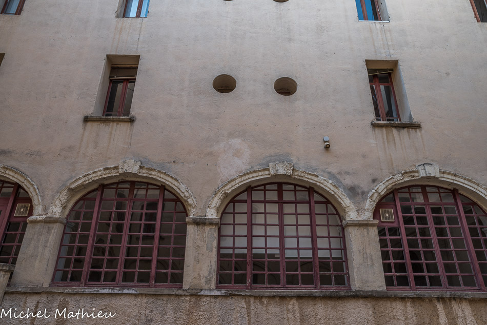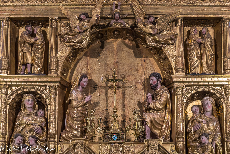 Chapelle Notre-Dame-de-Pitié Le chœur et l'autel ont été profondément modifiés pour l'un, totalement rapporté pour l'autre. Occupé par un autel de pierre surmonté d'un retable en 1656, il était séparé de la nef par une balustrade. Les marches ont été bâties par le maçon marignanais Jean Gueivian, sous-traitant pour l'équipe aixoise à la fin du chantier de 1656. Après la dépose du tableau en 1898, une niche cantonnée de motifs peints abrita la statue mariale, alors que deux plus petites étaient destinées aux ornements liturgiques.