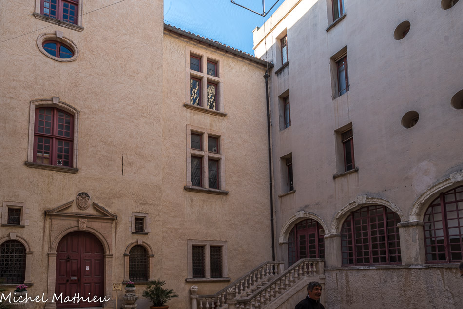 Château des Cauvet La cour carrée est délimitée par quatre ailes aménagées ou bâties par les barons puis marquis de Covet. Elles constituent un palais urbain organisé autour d'un quadrilatère parfait. L'aile ouest présente des caractéristiques probablement du XVIe siècle comme les fenêtres à croisée, ainsi que des embellissements du XVIIe comme le portail à fronton brisé ordonné en 1605 par Jean-Baptiste Ier de Covet.
