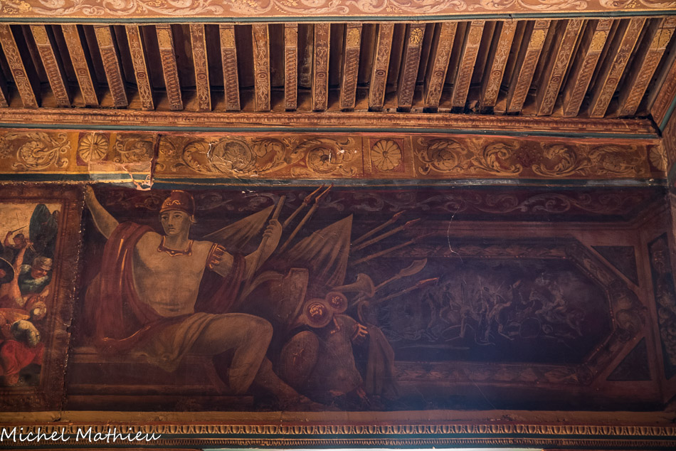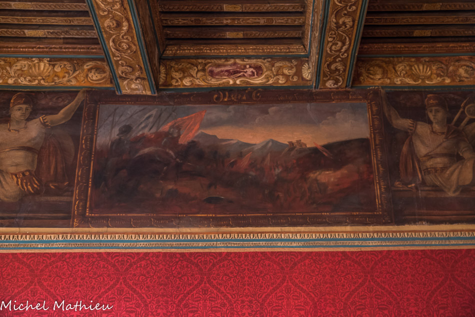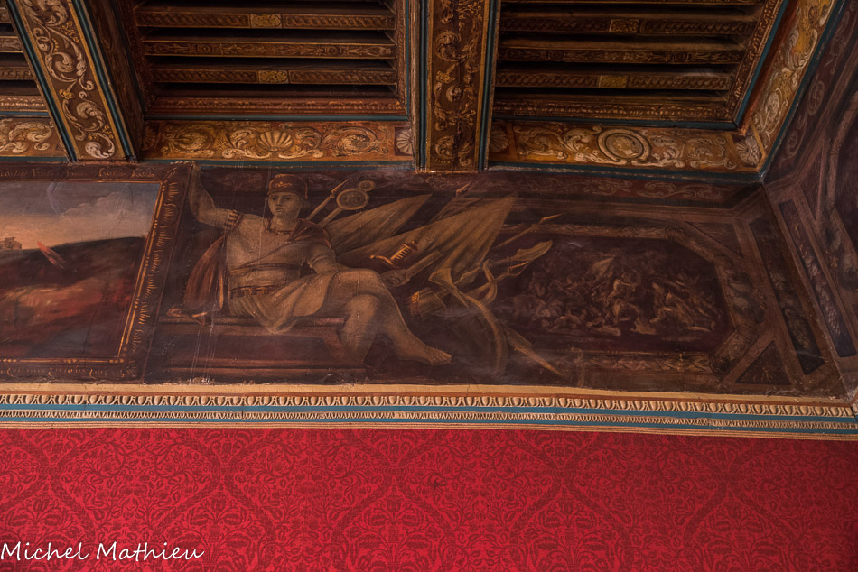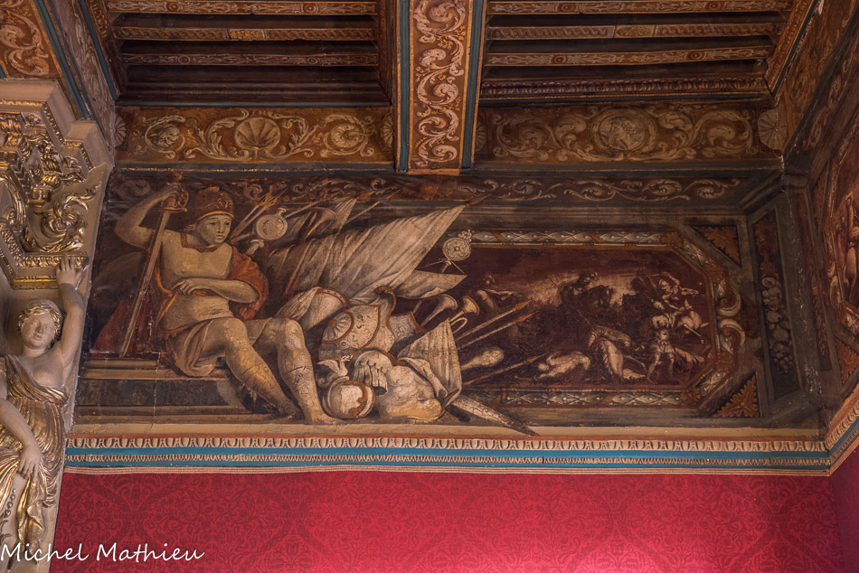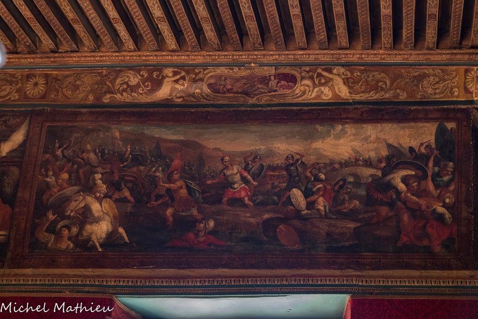 Château des Cauvet la Bataille du Pont Milvius, inspirée de la composition de Giulio Romano au Vatican.