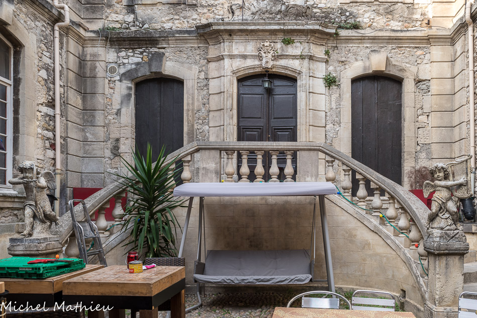 Sur la façade orientale, le balcon, également en fer forgé, domine le Rhône. A proximité Les Grandes Fontaines.