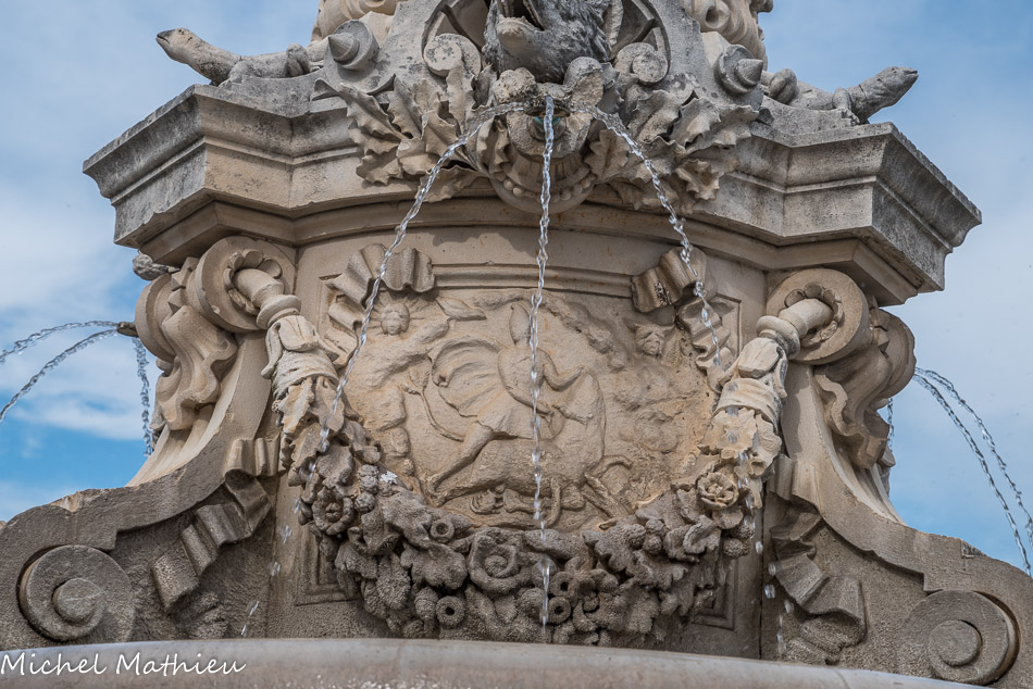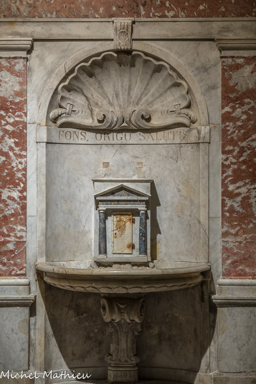 C’est une des deux fontaines publiques qui ont été édifiées au début du XVIIe siècle pour desservir en eau potable des quartiers orientaux de la vie. Autour du bassin, datant de la fin du XVIIIe, on remarque deux pilastres cannelés reliés par un entablement et une urne encastrée dans une niche.