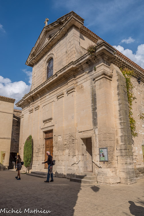 Richerenches. Eglise Saint Denis. La façade de l'église fut entièrement refaite selon les plans de l'architecte Jean-Baptiste Franque, en 1765.
