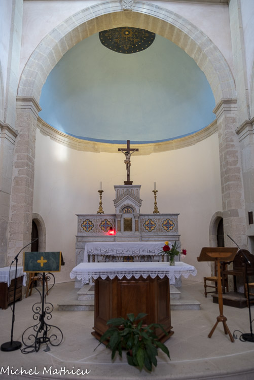 Richerenches. Eglise Saint Denis. Le chœur : maître Autel en marbre, offert par M. Eugène Martin en 1900