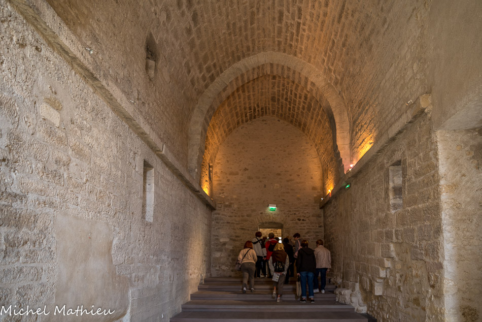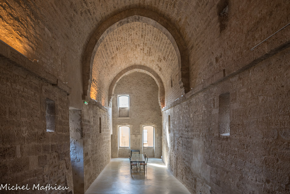 Richerenches. L’étage est voûté, des contreforts massifs viennent renforcer la structure du bâtiment. Ils sont reliés par des arcades formant mâchicoulis, supportant une courtine et un crénelage.