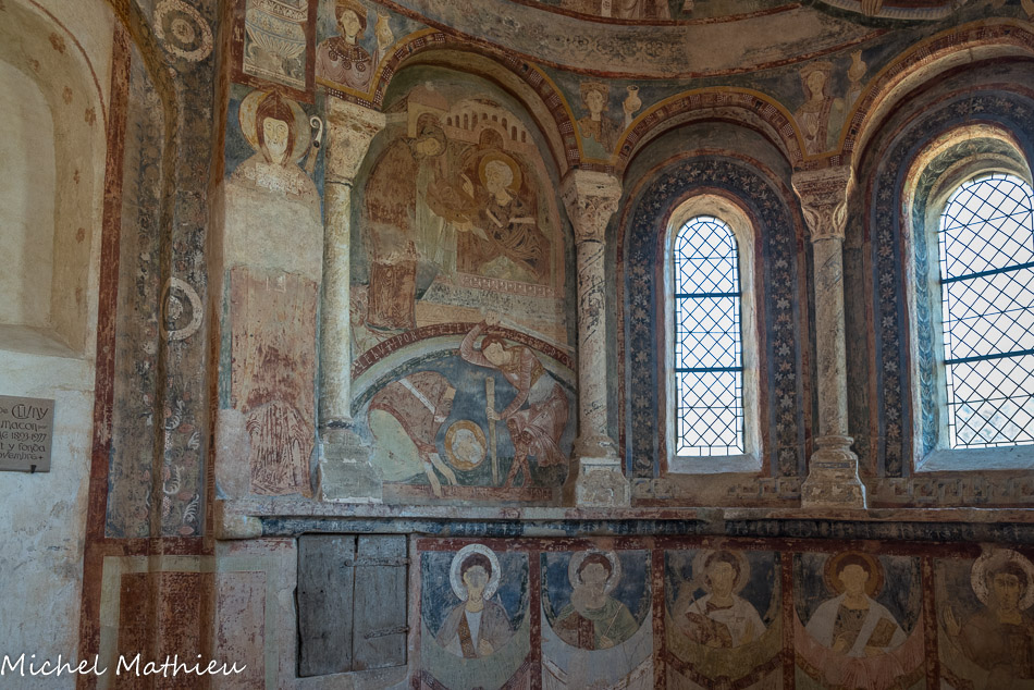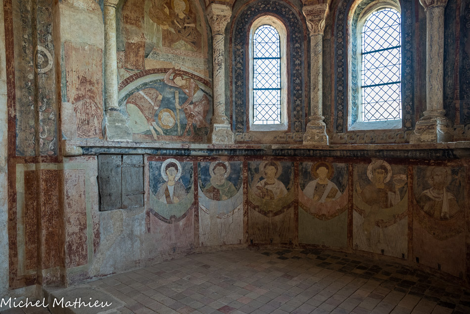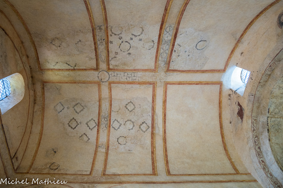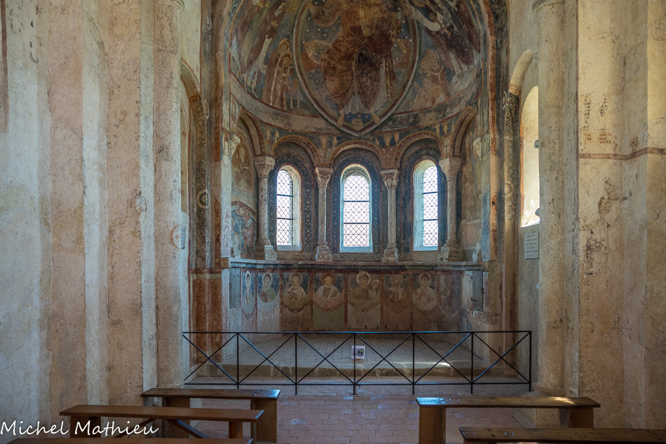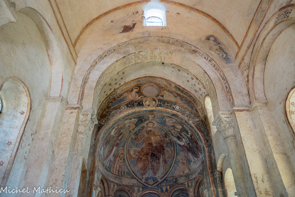 Chapelle des Moines. Berzé. On entre dans la chapelle haute par la façade occidentale et on fait face au décor de l’abside.