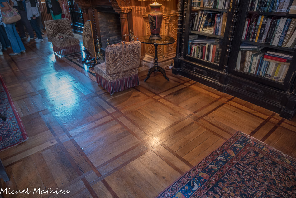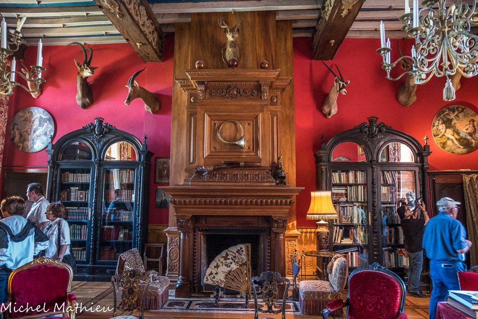 Le château de Cormatin. La bibliothèque 1900. À l’étage, le salon-bibliothèque permet d’évoquer les célèbres chanteurs et compositeurs, qui séjournaient à Cormatin pendant les étés de la Belle Epoque, Caruso, Chaliapine, Litvine, Jules Massenet, etc.