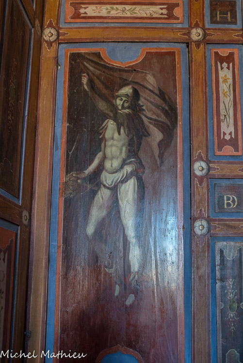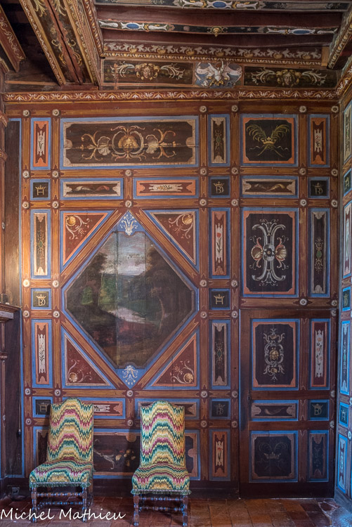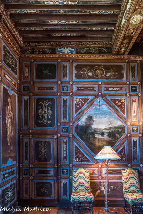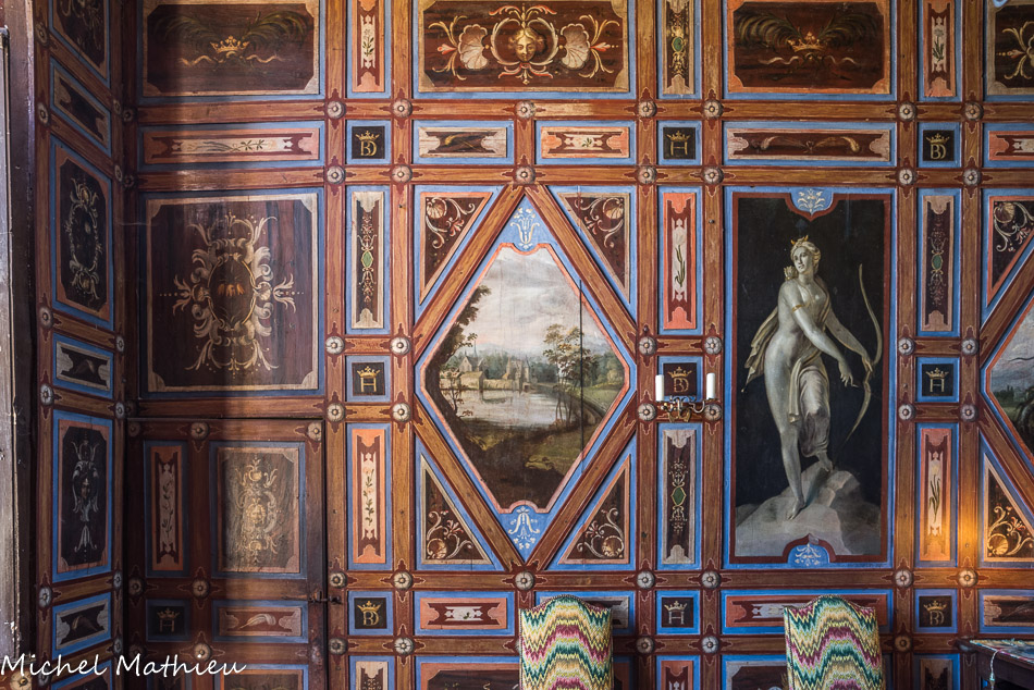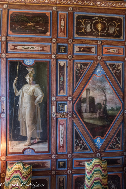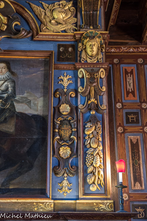 Le château de Cormatin. La chambre de la marquise. Détail des boiseries de la chambre.