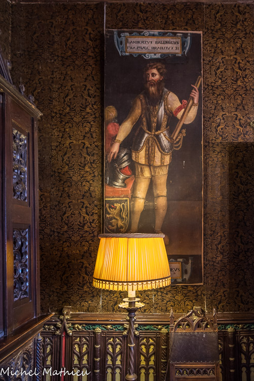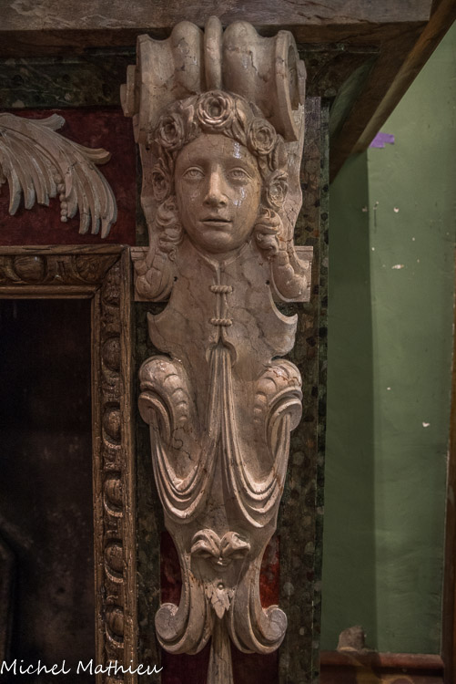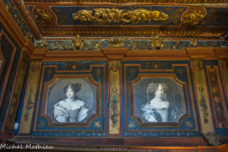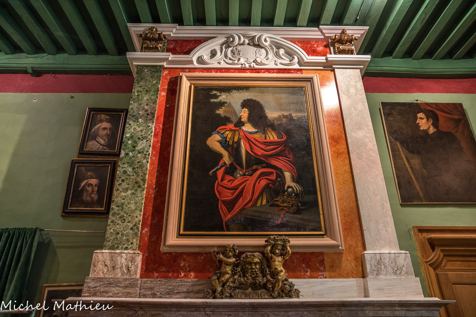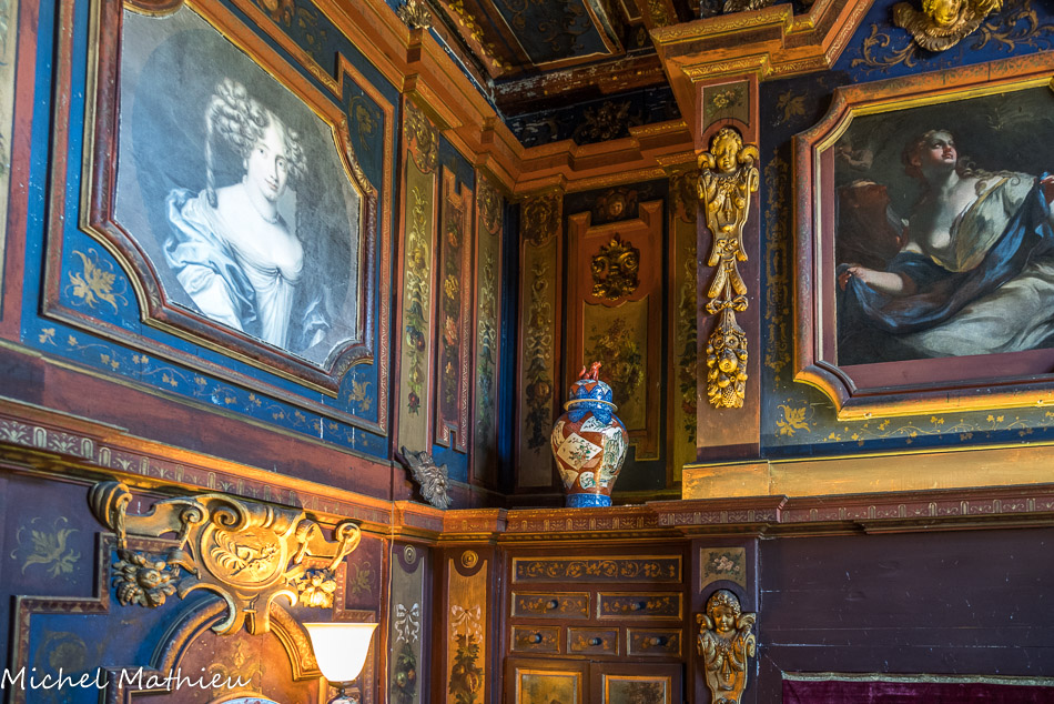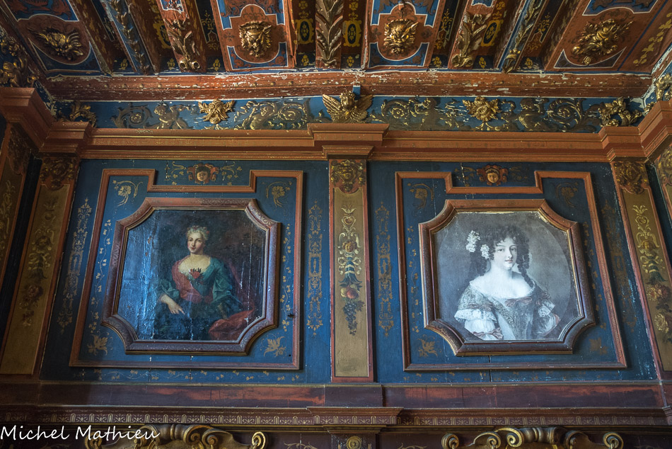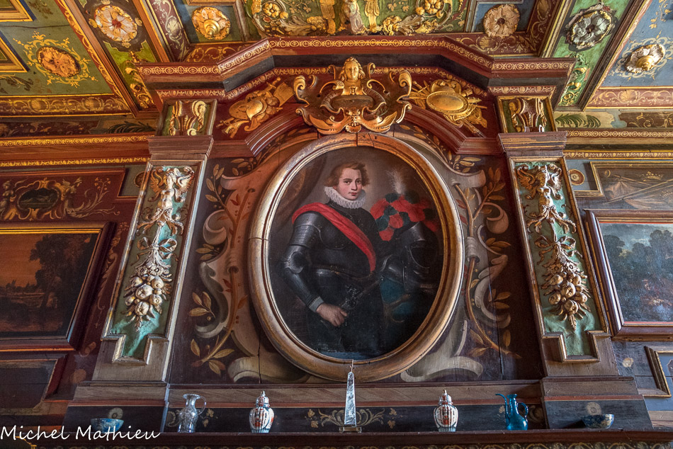 Le château de Cormatin. La salle des miroirs. Au-dessus de la cheminée, le maître des lieux, Jacques du Blé surnommé à la Cour "le Rousseau de la Reine".