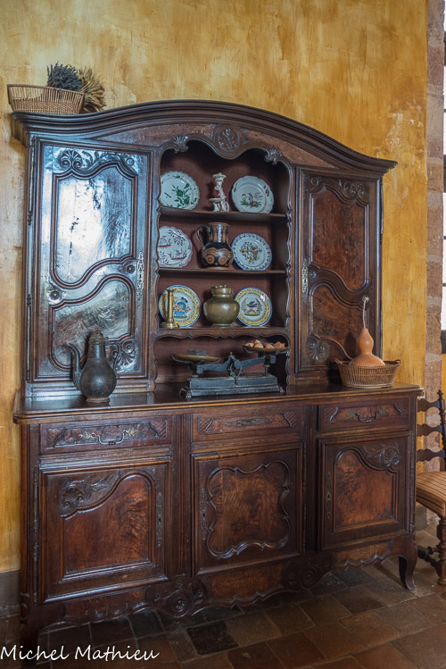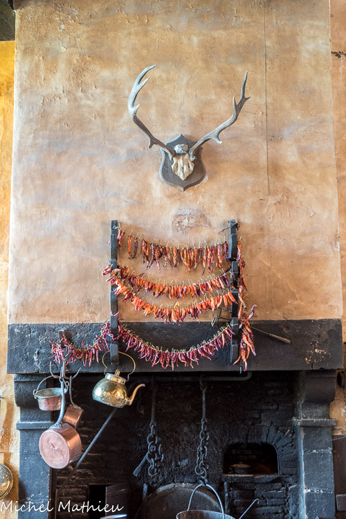 Le château de Cormatin. La cuisine. La grande cheminée avec tourne-broche