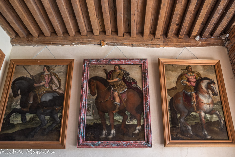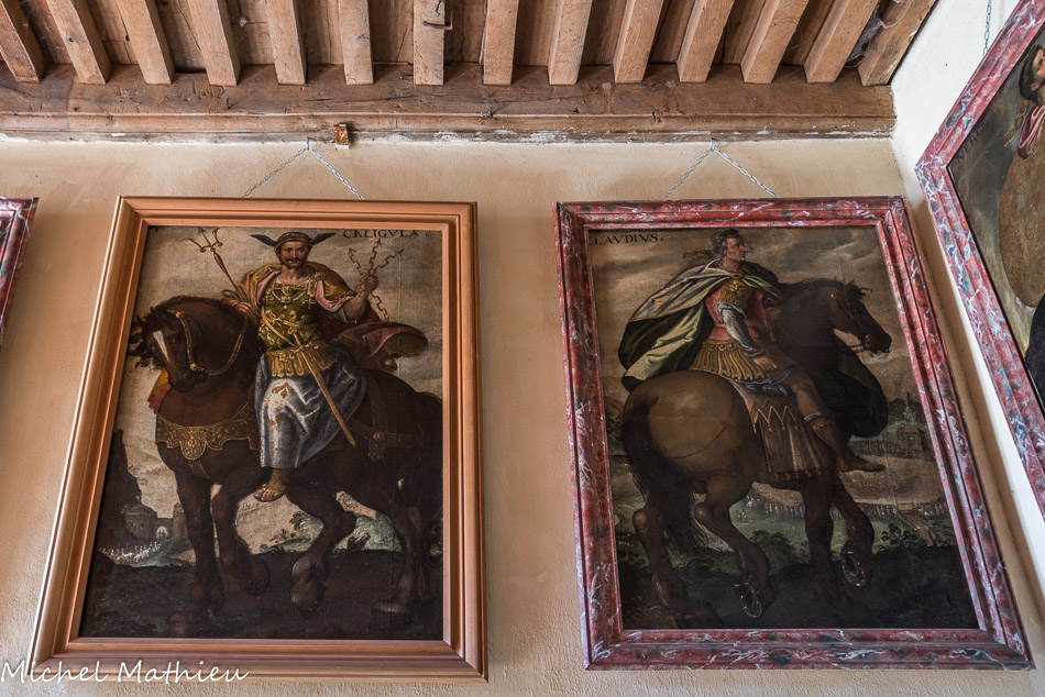Le château de Cormatin. La chambre du marquis. César et Auguste. Cette suite d’empereurs romains a été inspirée à Stradanus par une salle du palais ducal de Mantoue, le Cabinet des Césars (Camerino dei Cesari) décoré par Giulio Romano en 1536.