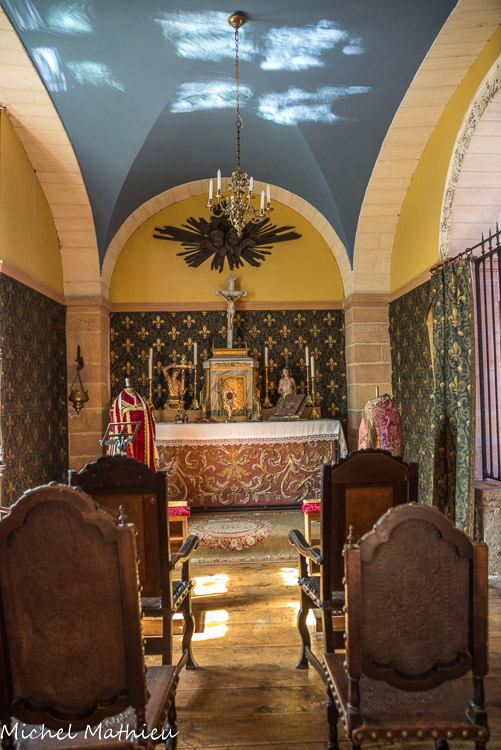 Le château de Cormatin. La chapelle. Elle était dédiée à Saint Roch, invoqué contre la peste, dont la dernière épidémie en Bourgogne se produisit en 1628. Un prêtre y célébrait la messe chaque jour.