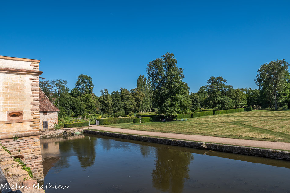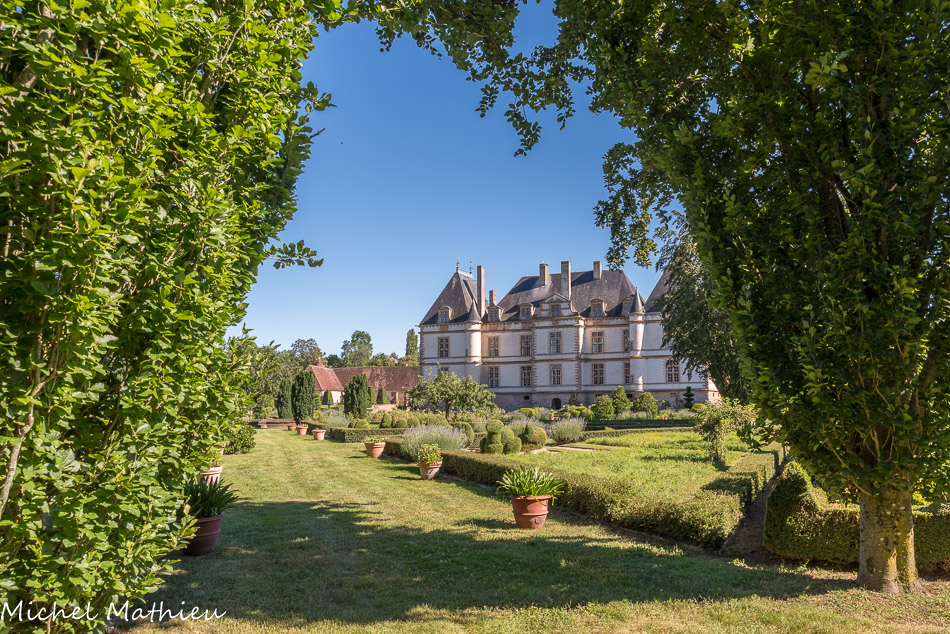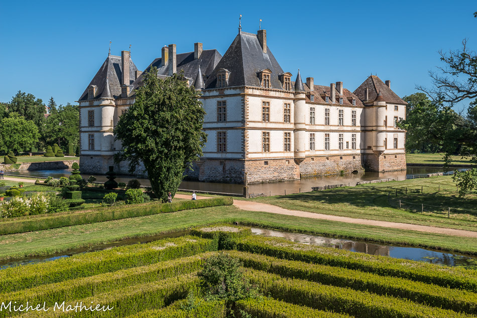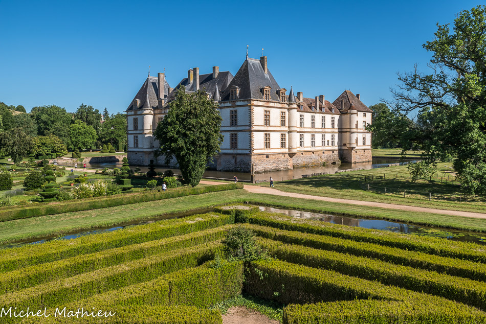 Le château de Cormatin. A droite, le Quinconce, avec derrière le Théâtre de Verdure.