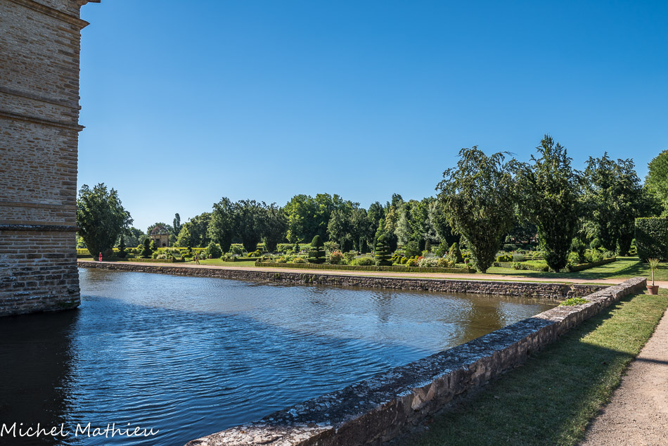 Le jardin a retrouvé sa disposition d’origine : un quadrillage dont le carré des douves forme l’élément central. Il présente les caractéristiques du jardin français du début du XVIIe : Horizontalité mais jeu sur les niveaux ; Importance des pièces d’eau ; Diversité, chaque carré est individualisé ; Symbolisme. Depuis la Renaissance, un jardin est conçu comme une représentation du monde et de la destinée humaine.