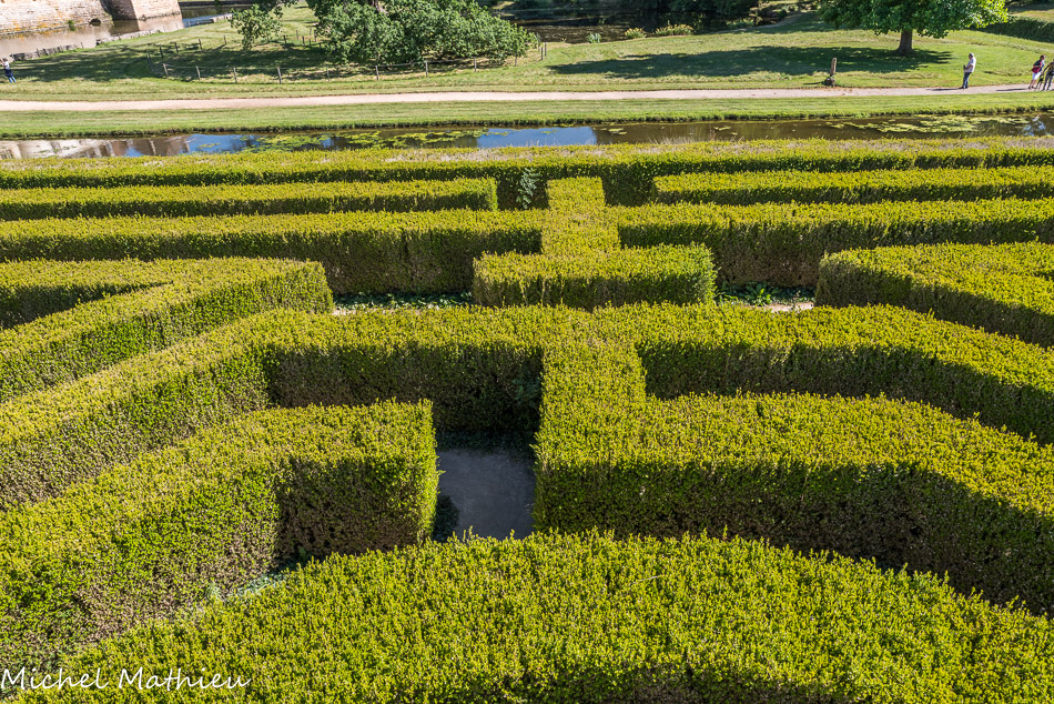 Le château de Cormatin. Le labyrinthe, mythe universel représente le chemin intérieur, à travers les épreuves et les égarements vers la connaissance de soi. Pour le croyant c’est l’itinéraire de l’Âme vers Dieu.