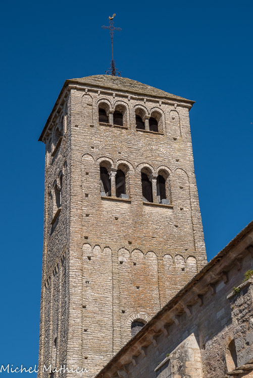 L'église Saint-Martin de Chapaize. La belle coupole-lanterne ovale, avec baies et arcatures, supporte le clocher.