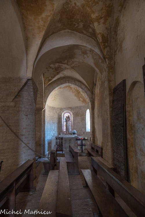 L'église Saint-Martin de Chapaize. La travée de chœur, plus tardive, est voûtée d’arêtes également.