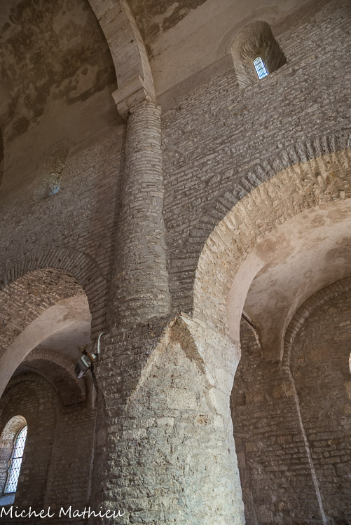 L'église Saint-Martin de Chapaize. Elévation de la nef. Les murs et les arcs doubleaux des bas-côtés ont été partiellement refaits en moyen appareil aux 12e et 14e siècles.