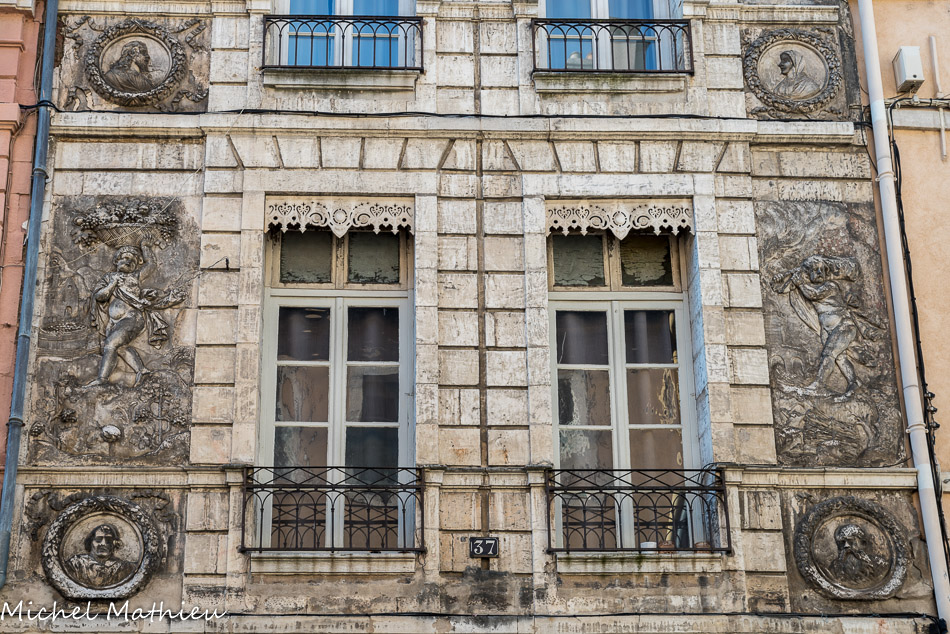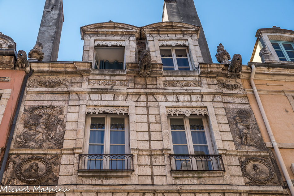 Maison dite des Quatre saisons. Du XVIe au XVIIIe siècle, les maisons situées dans cette rue appartiennent souvent à des hommes de loi installés près de la place du Châtelet où était rendue la justice royale. Ainsi, se trouvait ici au XVIe siècle la maison d'Hugues Baichet, procureur du Roi, qui chaque année, le jour de la procession de la Fête- Dieu ornait sa façade de la tapisserie aujourd’hui visible dans la cathédrale Saint Vincent.