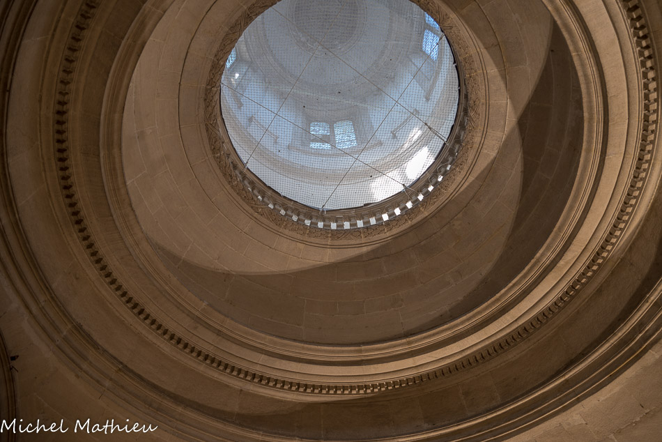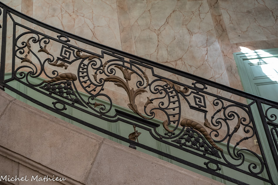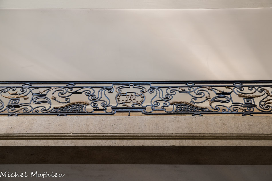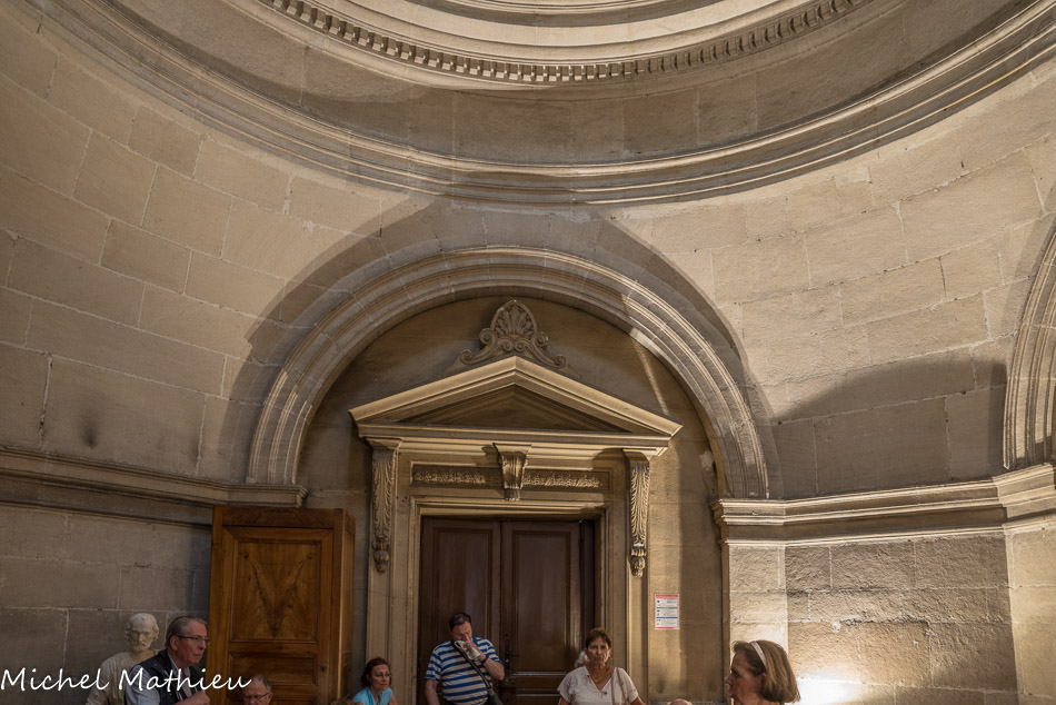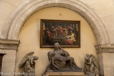 - au niveau de cet entablement, le motif de drapés est lui une citation directe : de tels drapés étaient fréquents sur les sarcophages romains de pierre, comme sur les murs peints des demeures de Pompéi ou d’Herculanum... C’est la salle d'accueil des personnes pauvres qui ne sont pas hospitalisées mais à qui on distribue des médicaments.
