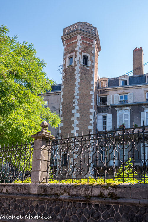 - d'architecture « à la française » : encadrement des ouvertures en pierres taillées, régularité, symétrie, mise en valeur de l'avant corps central ;