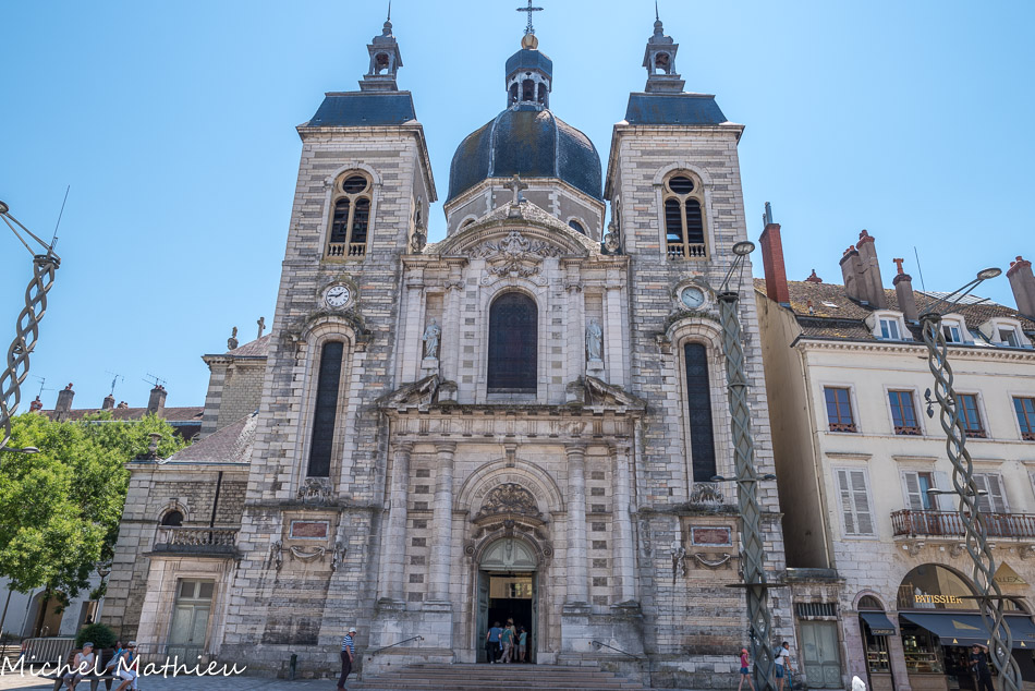 La cathédrale de Chalon s’élève à l’emplacement d’un temple antique du castrum de Cabillonum. Chalon est une ville épiscopale très ancienne puisque l’évêché fut fondé en 449. La première cathédrale, dédiée à Saint-Etienne, fut élevée sur l’enceinte du castrum gallo-romain du 3e siècle. En 542, la cathédrale est dédiée à Saint-Vincent. Sous le Roi Gontran, Chalon devient la capitaleLa cathédrale au 18e siècle du royaume mérovingien des Burgondes. La première cathédrale fut agrandie en 580 par l’évêque saint Agricole et décoré de mosaïques fameuses. Aux époques mérovingiennes et carolingiennes, Chalon était un centre religieux important et lieu de plusieurs conciles, comme en 647 et en 813. La cathédrale, plusieurs fois restaurée aux 8e, 9e et 10e siècles, fut reconstruite en style carolingien avec l’assistance de Charlemagne. Une nouvelle cathédrale romane fut construite à partir de la fin du 11e siècle par l’évêque Gauthier de Couches (1080-1120). Elle fut érigée en trois étapes, d’est en ouest, de 1090 à 1150. Le chantier s’étale ensuite sur plusieurs siècles puisque l’église est reprise en gothique. Le chœur vers 1230, la nef au 14e siècle et les chapelles au 15e siècle complètent la cathédrale. La nouvelle église fut consacrée en 1403. L’église fut restaurée au 19e siècle et reçut une nouvelle façade néo-gothique, la première en France, à deux clochers durant les années 1827-1847.
