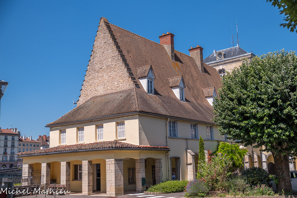 Construite vers 1500, la maison dite "des trois greniers" doit son nom à sa façade sur cour, à pans de bois, surmontée de hauts toits percés de trois niveaux de lucarnes (trois greniers). Elle a appartenu à la famille Riboudeau, bourgeois et marchands parmi les plus en vue à Chalon sur Saône au XVIe siècle.
