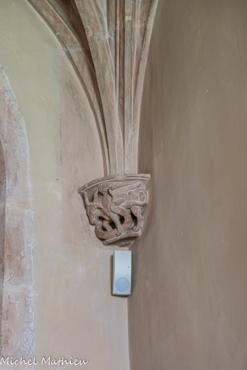 Dans le bas-côté sud, des sirènes oiseaux dans des rinceaux, représentant la séduction du mal.