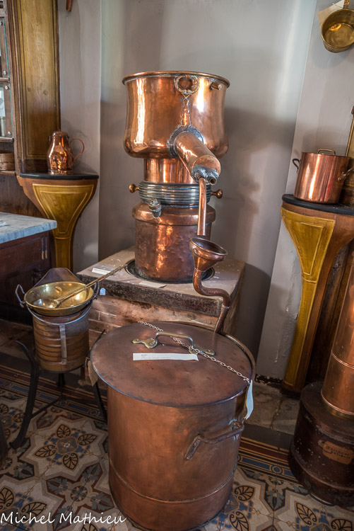 alambic (1782): pour fabriquer des eaux médicamenteuses, les alcools entrant dans la composition de certains remèdes, ainsi que les huiles essentielles.