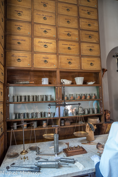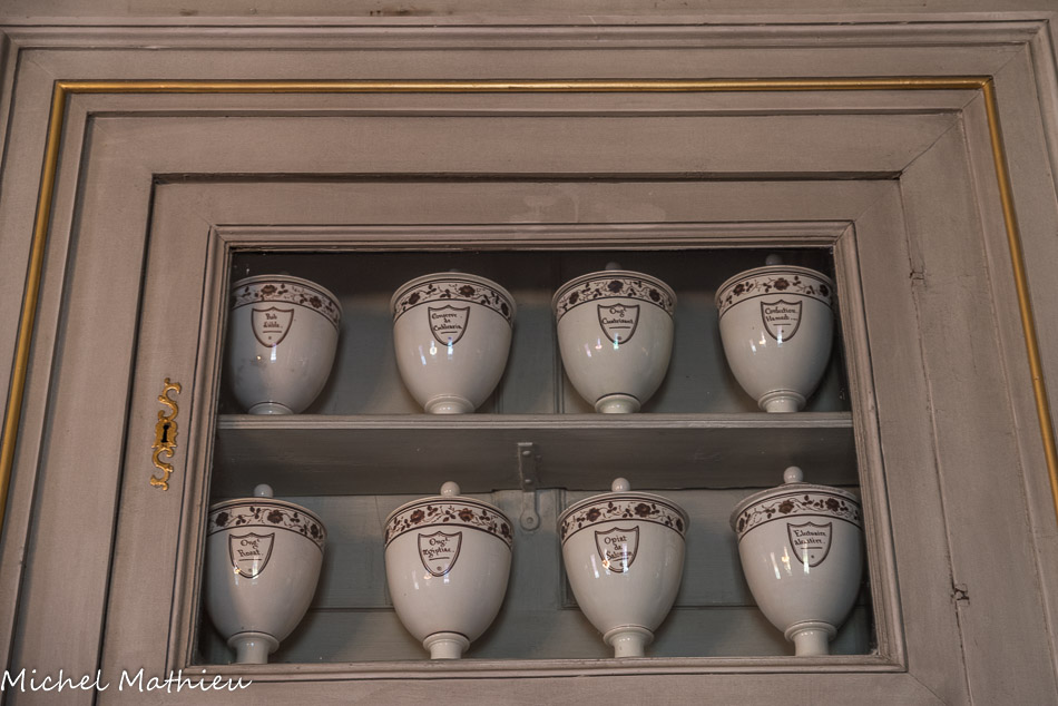On peut ainsi admirer la pharmacie du XVIIIe siècle abritant près de 400 tiroirs.