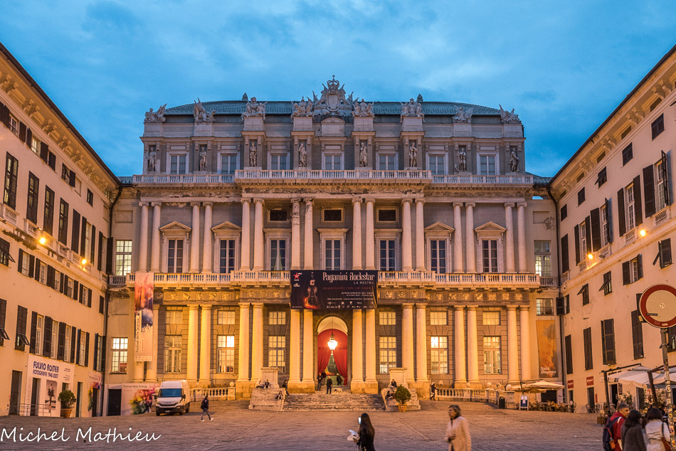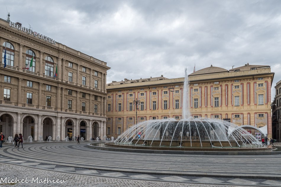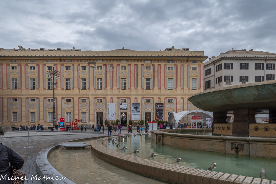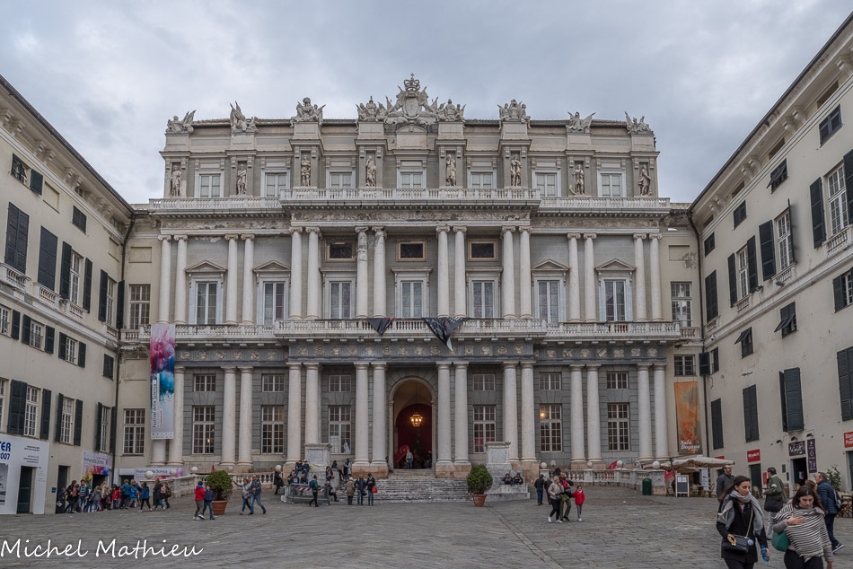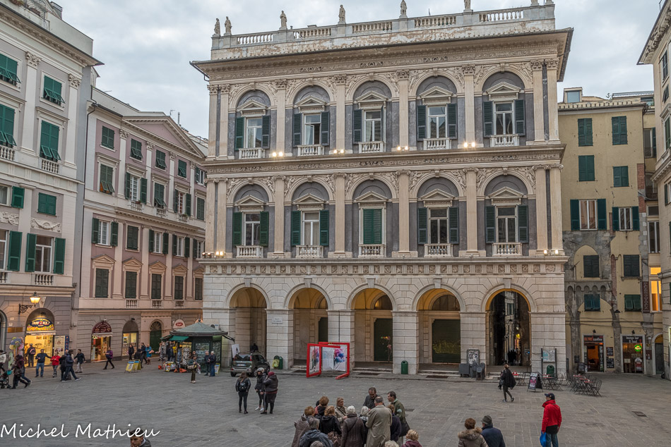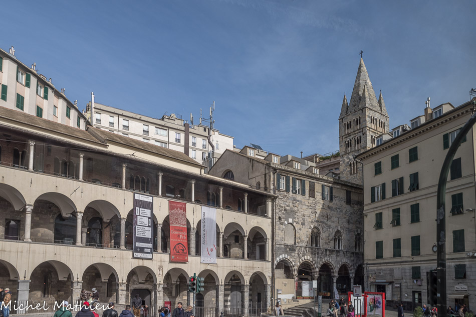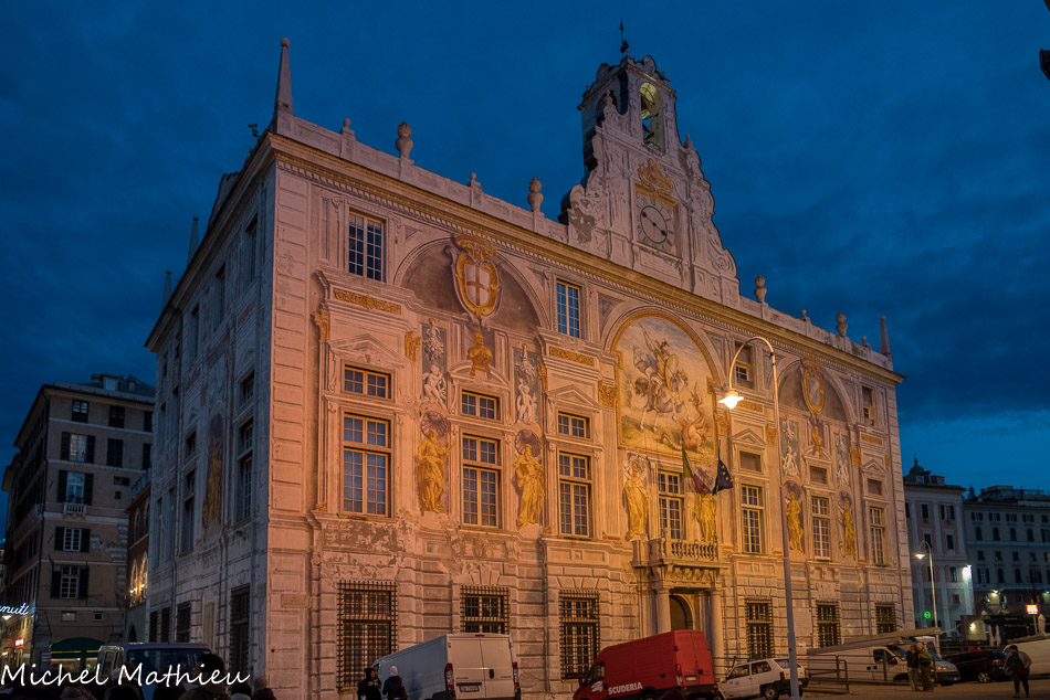 Le Palazzo Ducale (Palais des Doges) A gauche, le siège de la Région Ligurie, l’ancien Palazzo Italia di Navigazione.