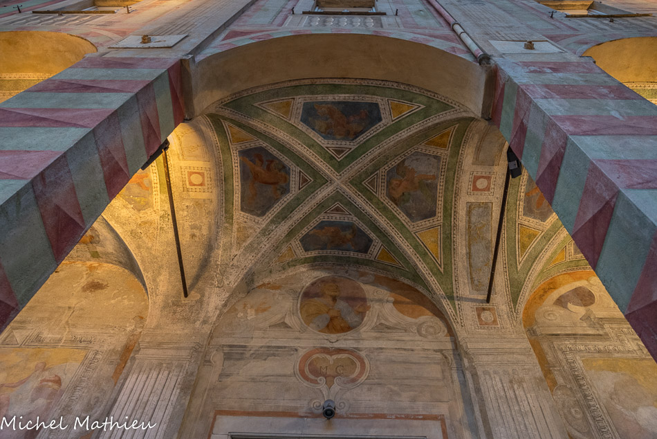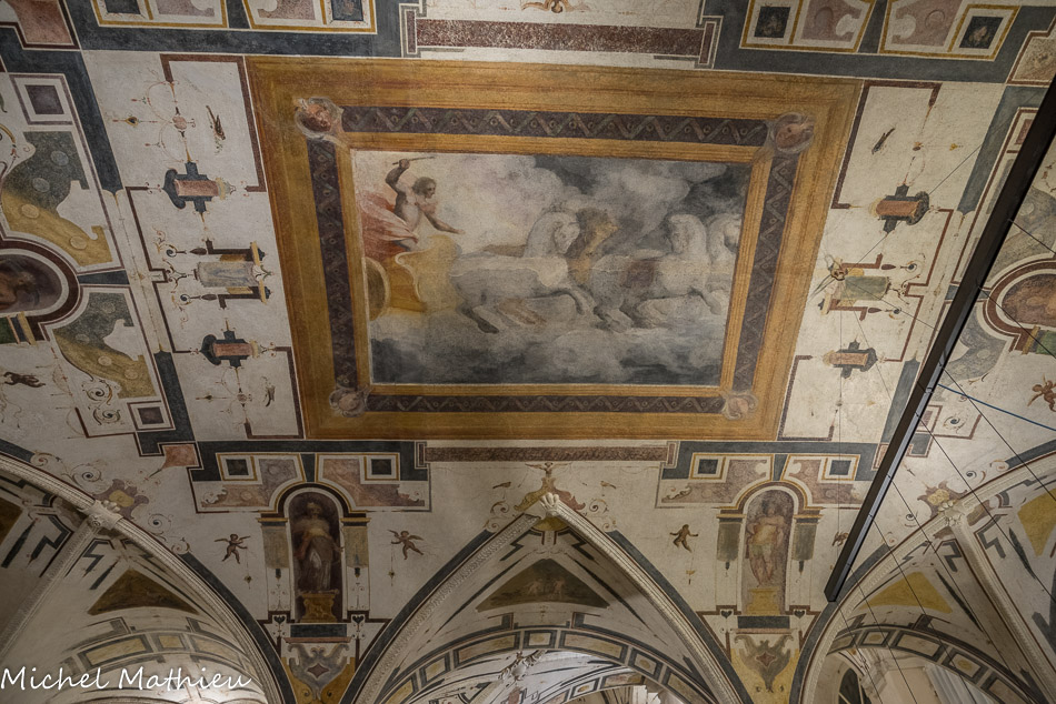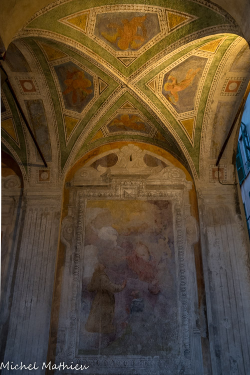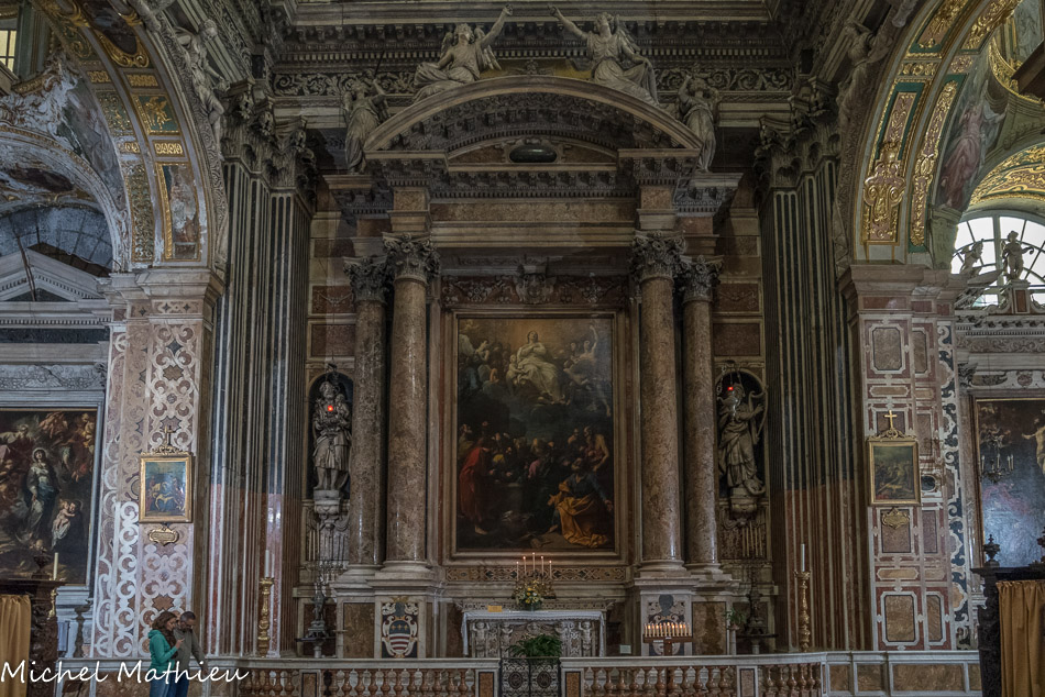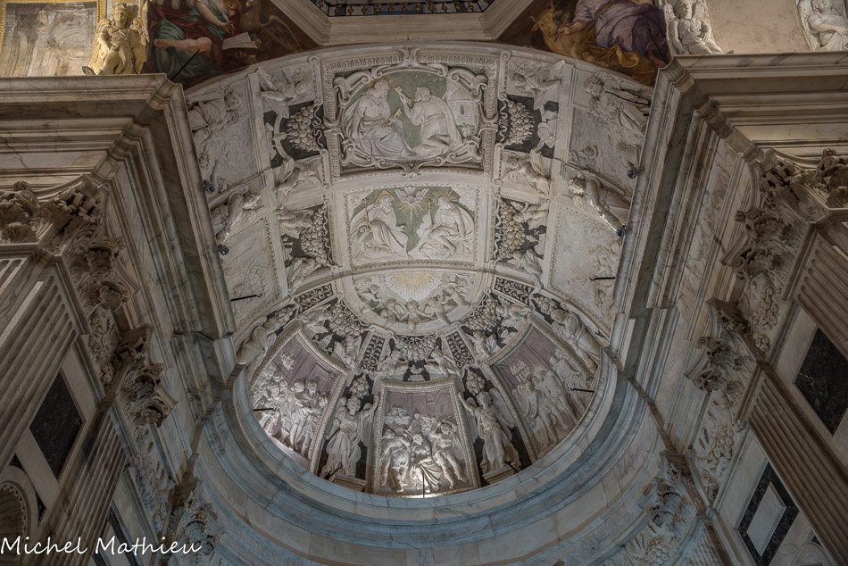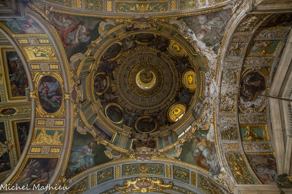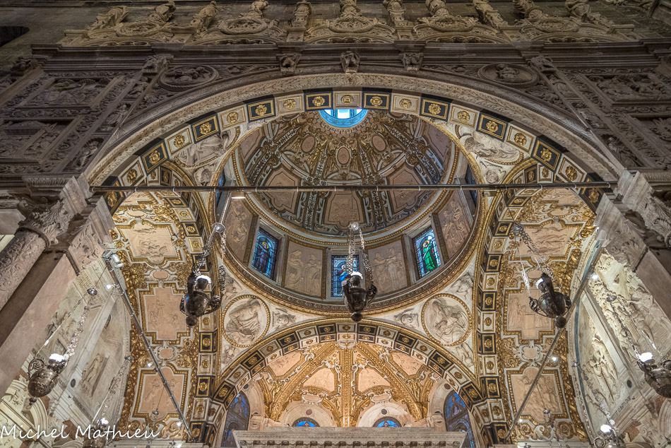 Place Banchi. Harmonieux est l’intérieur de la coupole de base octogonale et dont les pendentifs présentent les quatre évangélistes avec leur attribut respectif. En bas, Saint Jean et son aigle, et Saint Luc et son taureau. En haut, Saint Marc et son lion, et Saint Matthieu et son homme.