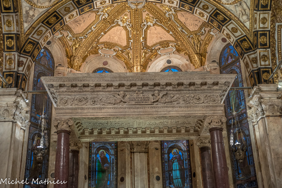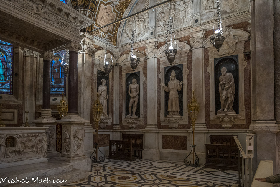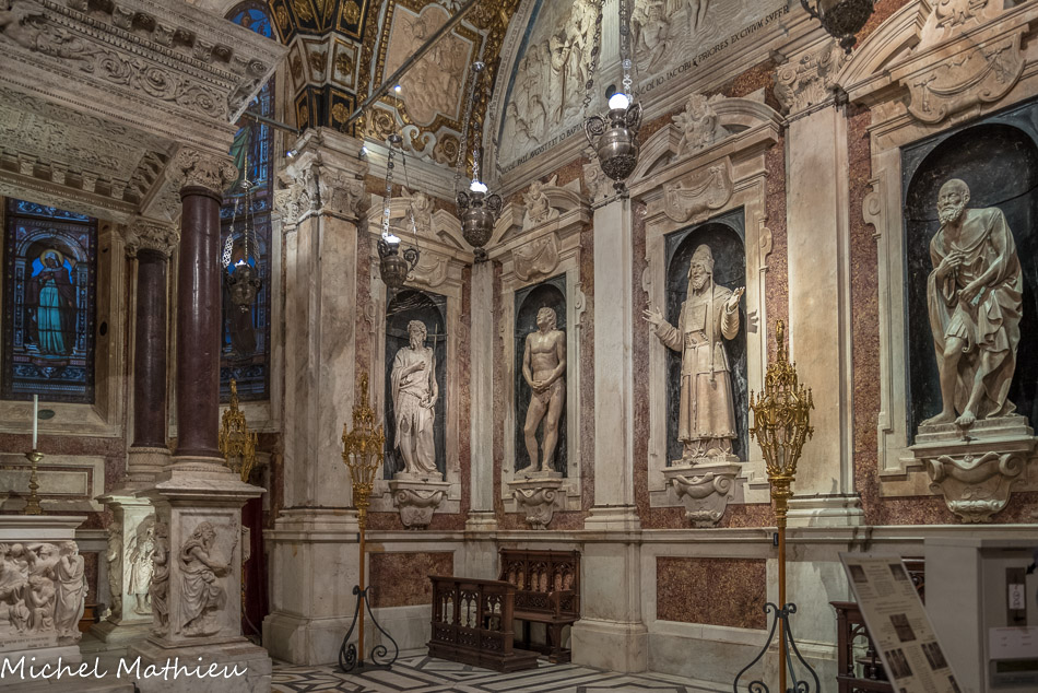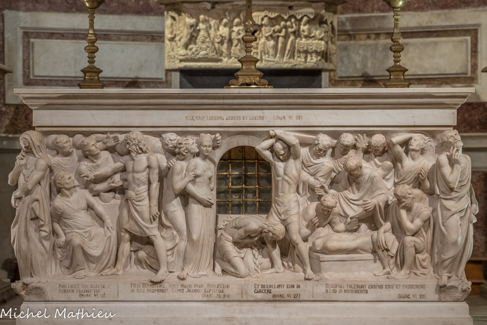 Place Banchi. Décollation de Saint Jean-Baptiste. A côté, les statues de marbre de S. Elisabetta et S. Zaccaria.