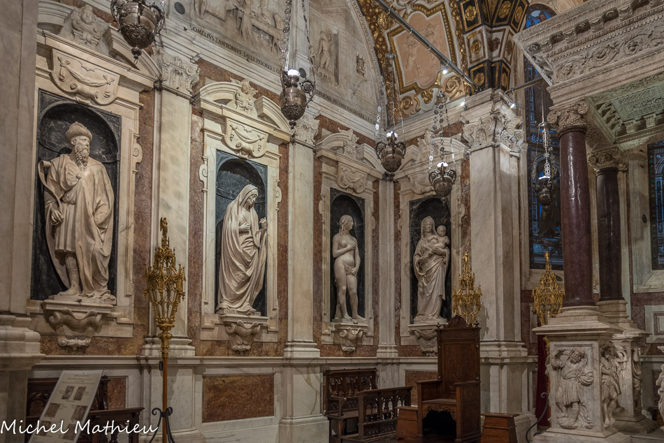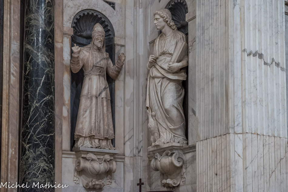 Place Banchi. Les statues de marbre de S. Stefano et S. Elisabetta.