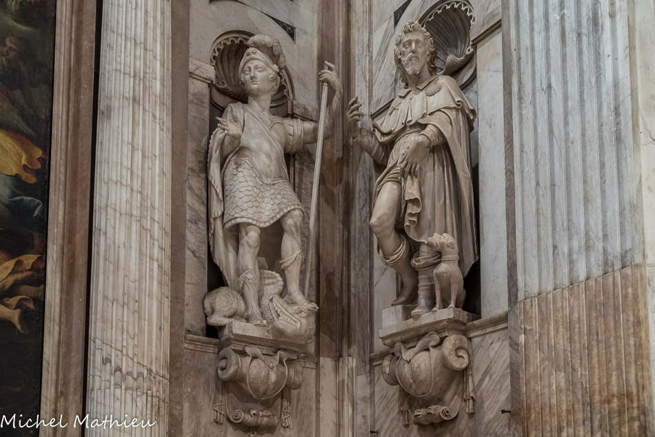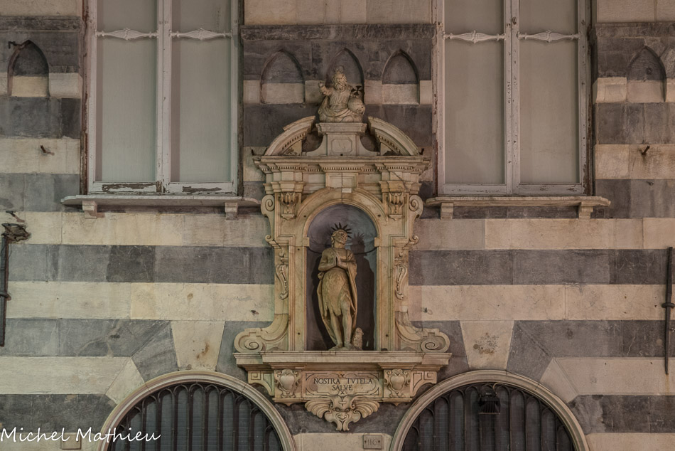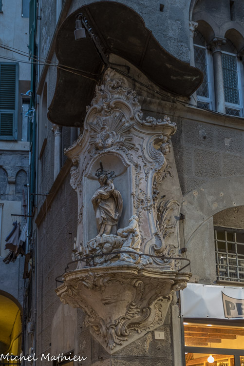 Place Banchi. et Giorgio et Rocco. Saints Giovanni Battista et Giorgiosont les patrons de l’ancienne République de Gênes, et Rocco et Sebastianosont invoqués contre la peste. Les statues sont de T. Carlone et D. Casella, début XVIIe.