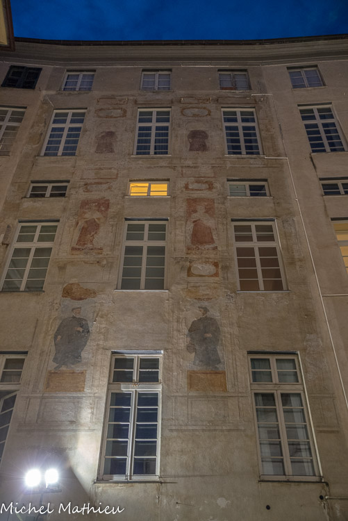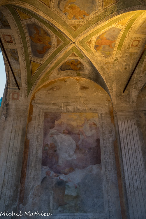 En 1481-1482 Le peintre Carlo Braccesco orne les façades de fresques en trompe-l'œil.
