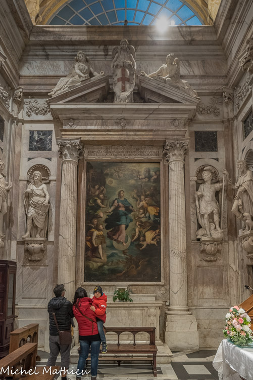 Place Banchi. Sur la gauche, la splendide chapelle de l’Immaculée avec la toile de A. Sémino de 1588,