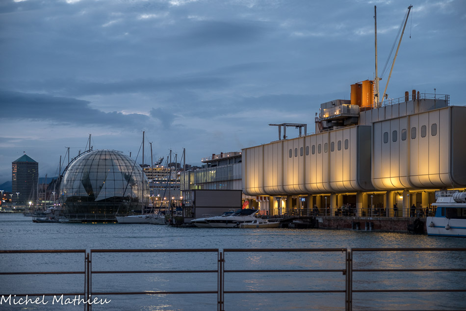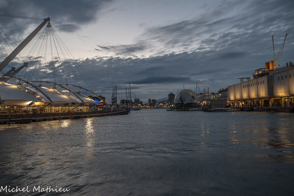Le port. A droite, l'aquarium avec sa biosphère. Au fond, le Crayon.