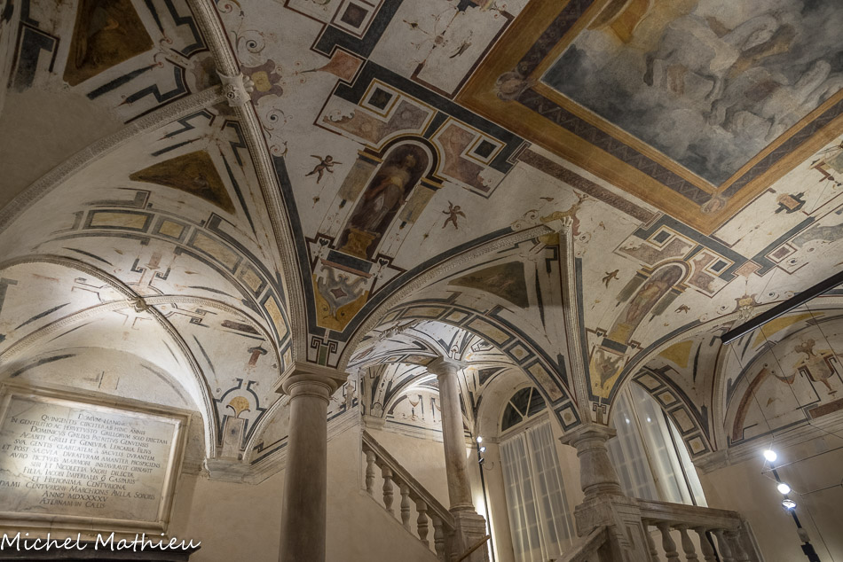 Le Palais Grillo. La salle est peinte à fresque par Castello Bergamasco, le sujet est le festin donné à Enée par Didon.