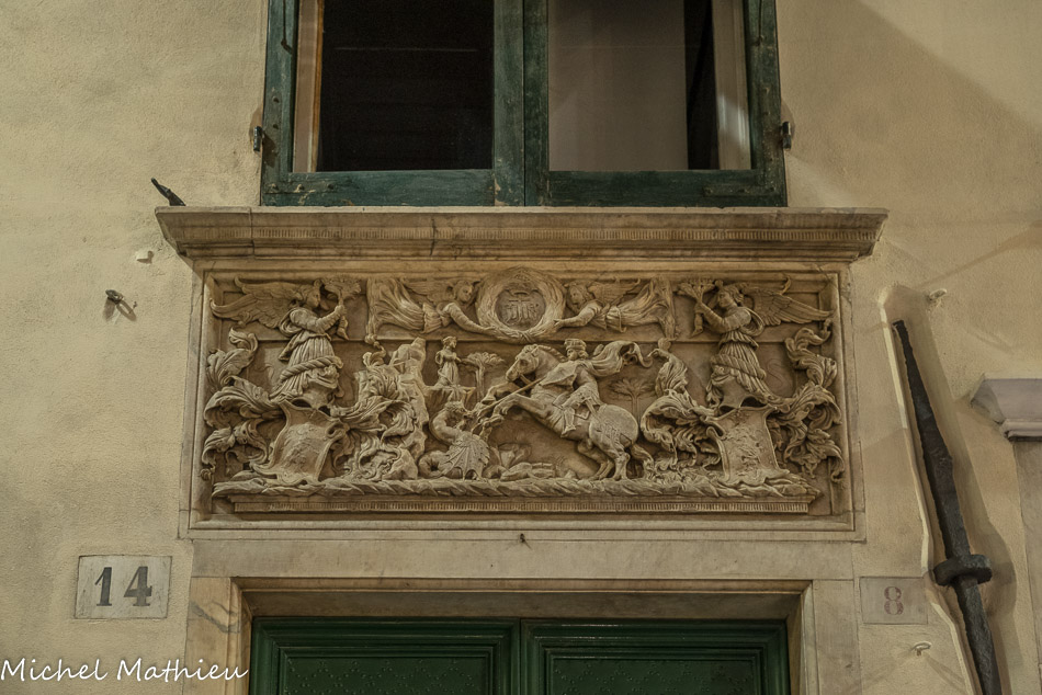 Place Banchi. Dans la chapelle de droite, dédiée à S. Giovanni Battista, la précieuse toile du martyre du Saint précurseur, patron de la ville, œuvre du peintre maniériste Lucquois Benedetto Brandimarte, fin XVIe.