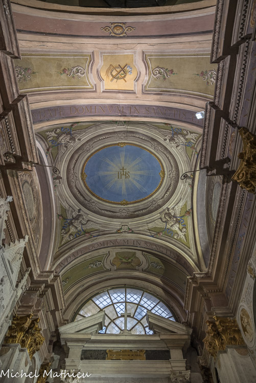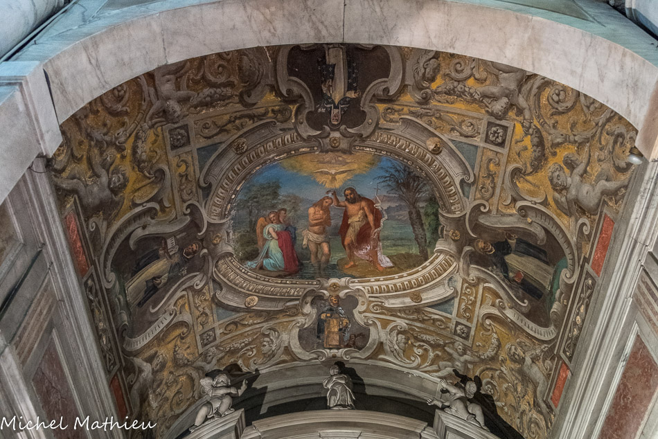 Église Santa Maria di Castello. Les fresques de la coupole, le Baptême du Christ, entourées de quatre panneaux avec les Saints dominicains, sont de Briasco.