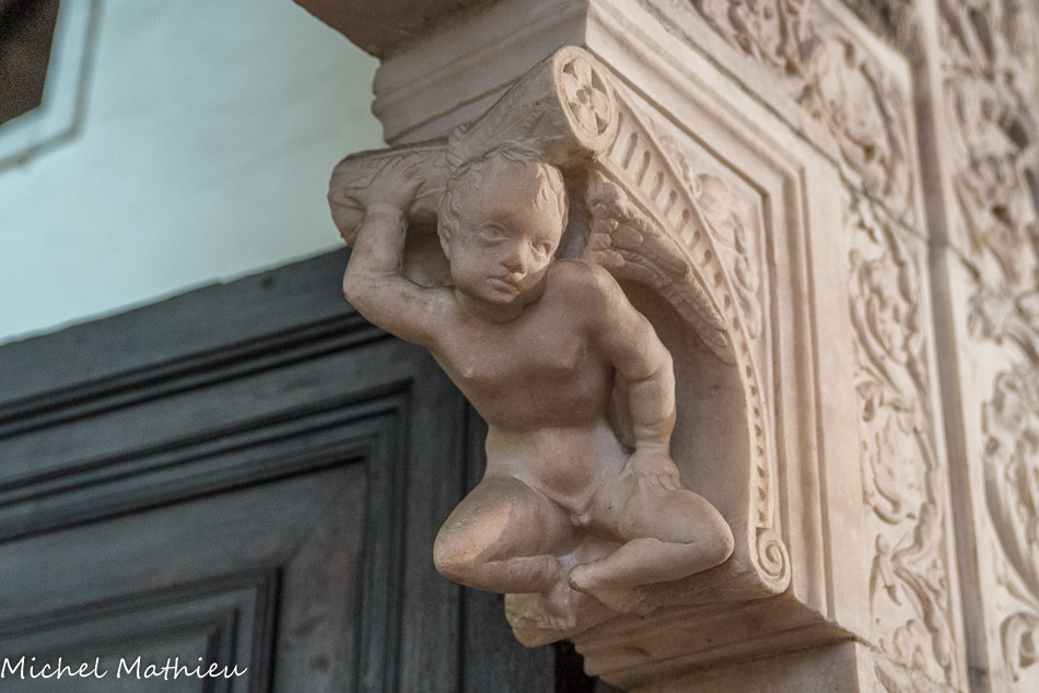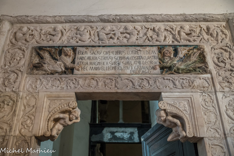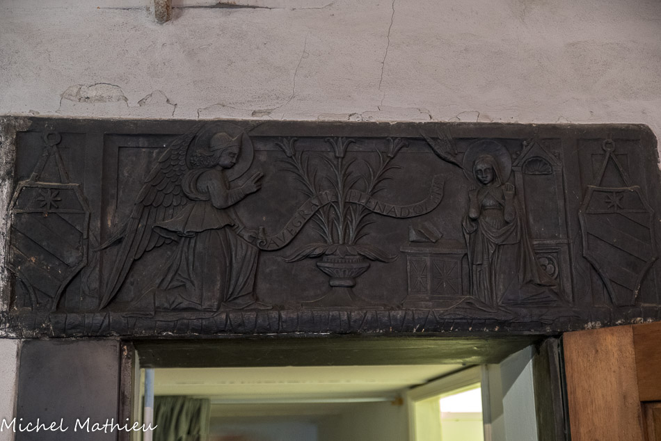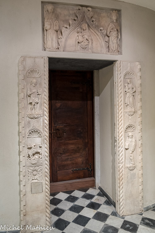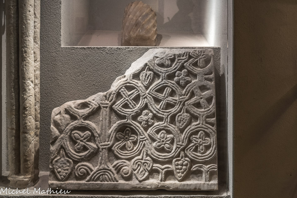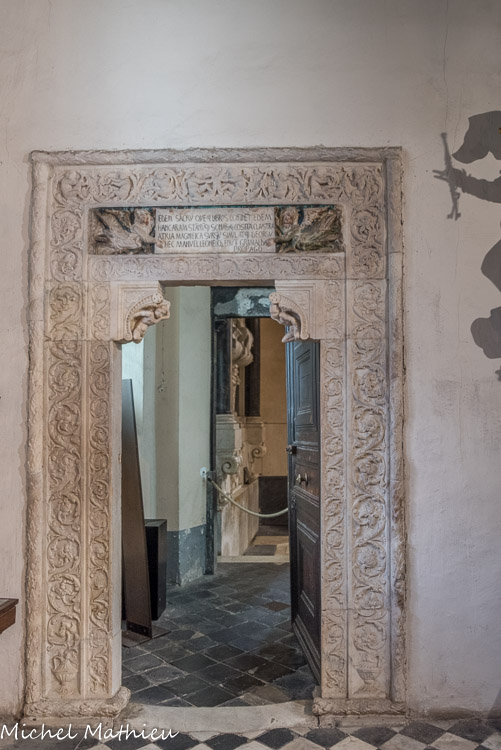 Église Santa Maria di Castello. Architrave, sculpture sur ardoise.