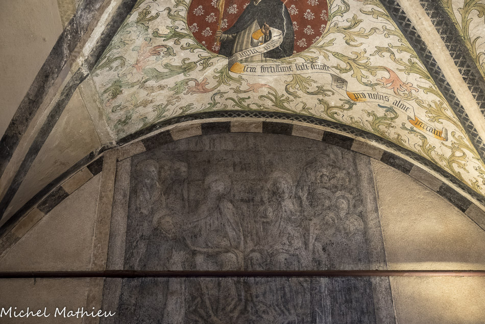 Église Santa Maria di Castello. Chapelle de Sainte Catherine. Les fresques qui représentent la vie de Sainte Catherine de Sienne sont de Nicolo Corso, 1474. A doite, Catherine de Sienne choisit l'habit dominicain.