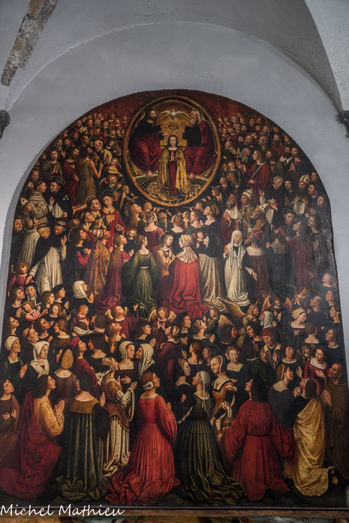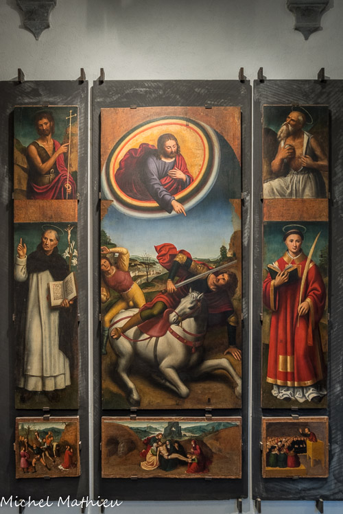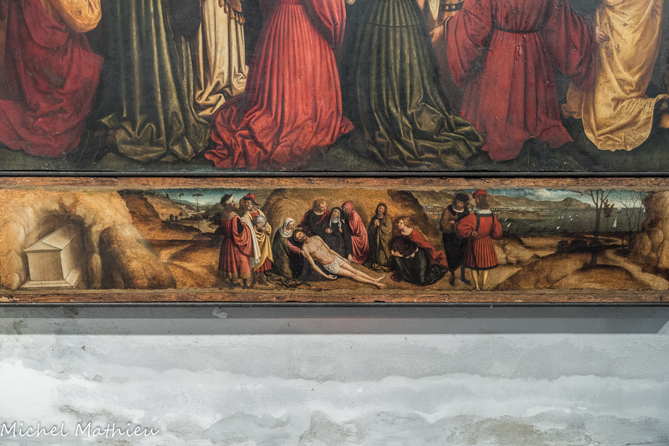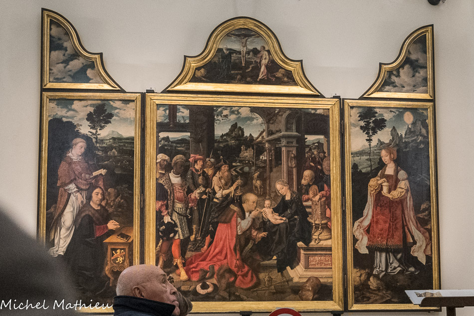 L'église San Donato. Le magnifique triptyque de Joos van Cleve (1515) représentant L'Adoration des mages (au centre)