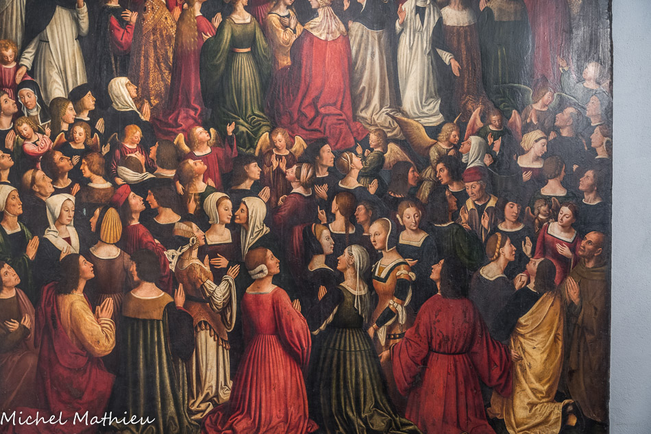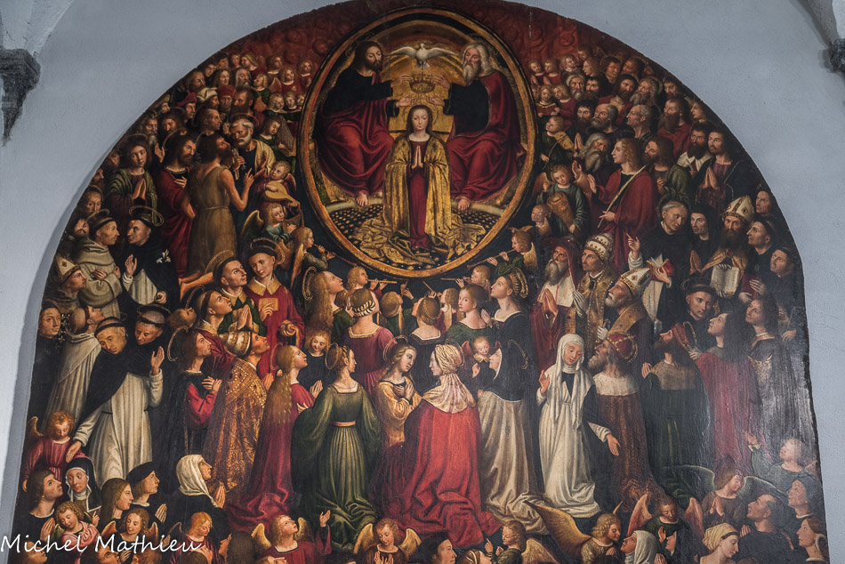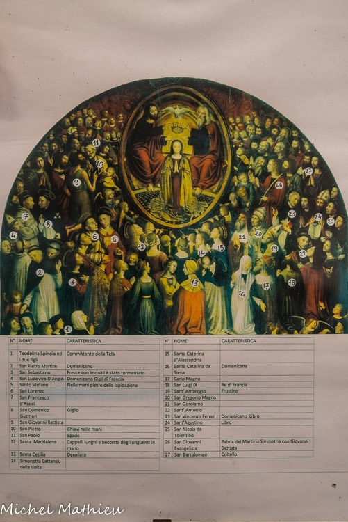 Église Santa Maria di Castello. Ludovic Bréa. Couronnement de la Vierge ou le Paradis. Panneau peint. 1513. 215 personnages, saints et fidéles.