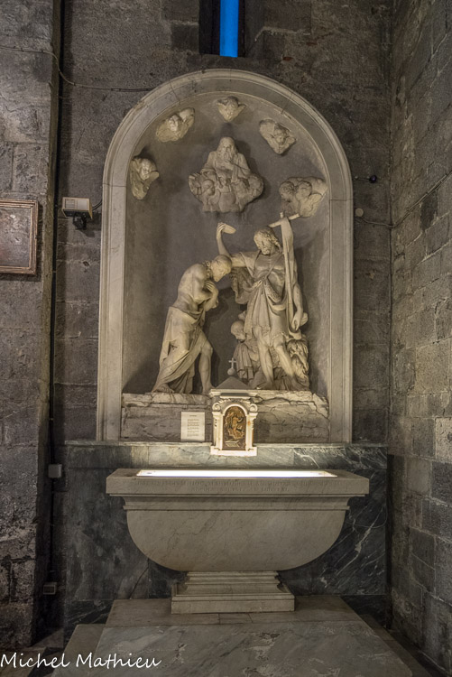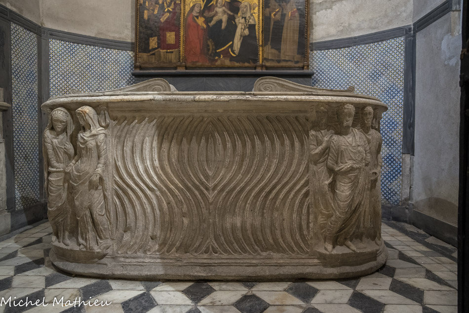 Église Santa Maria di Castello. Le baptistère. Sarcophage romain.